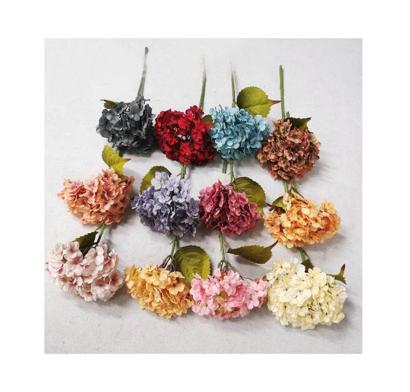 The colorful artificial hydrangea flower with fabric and iron wire materials.