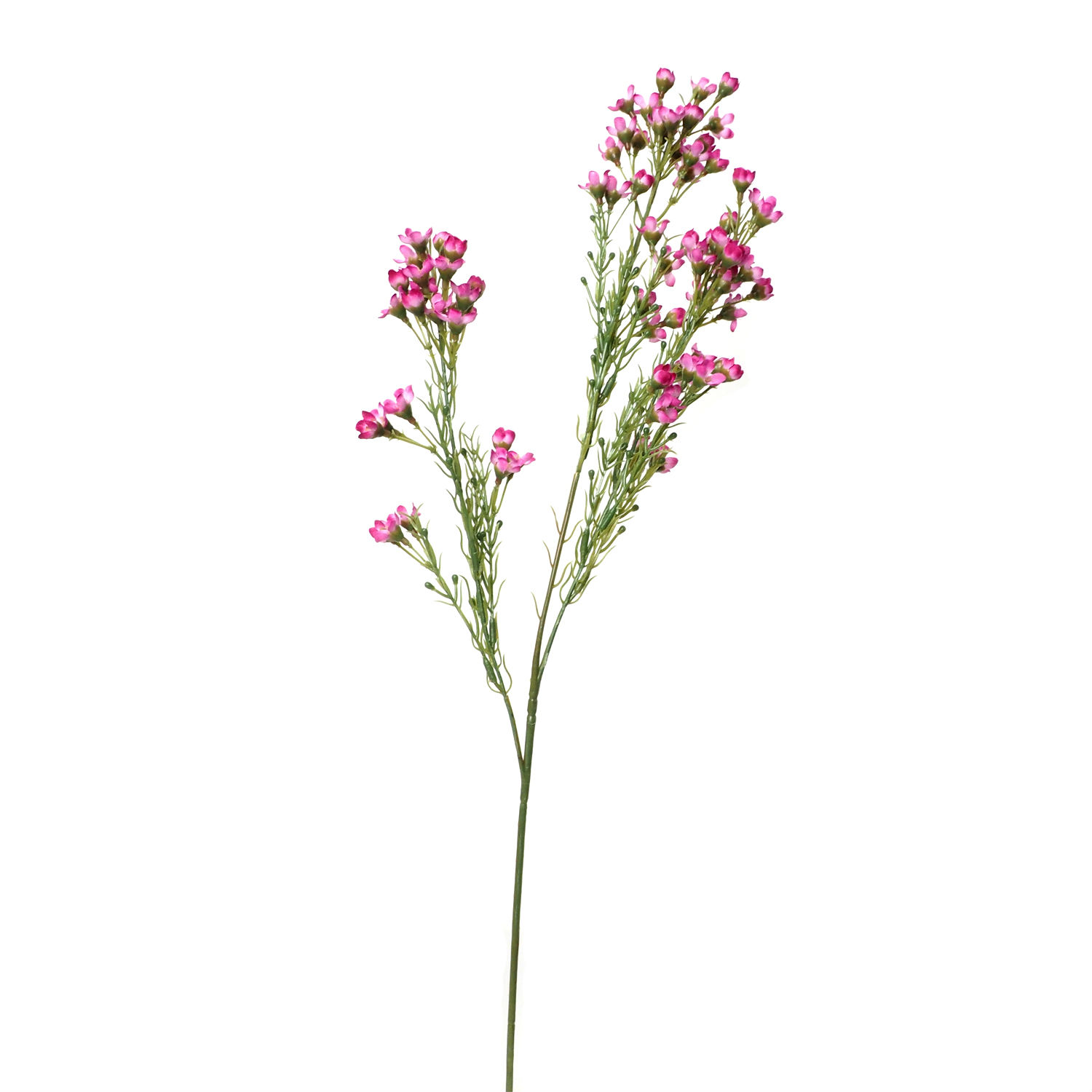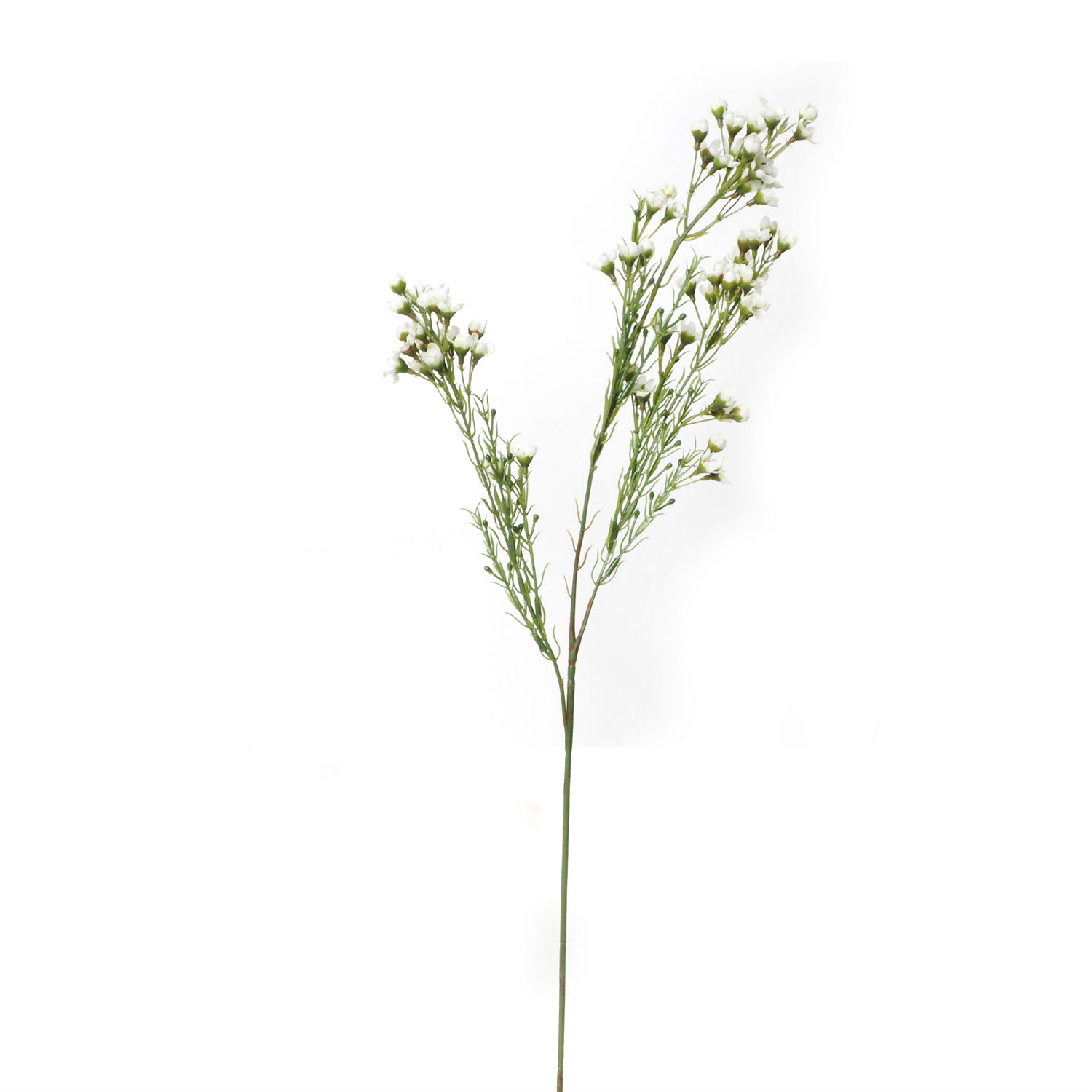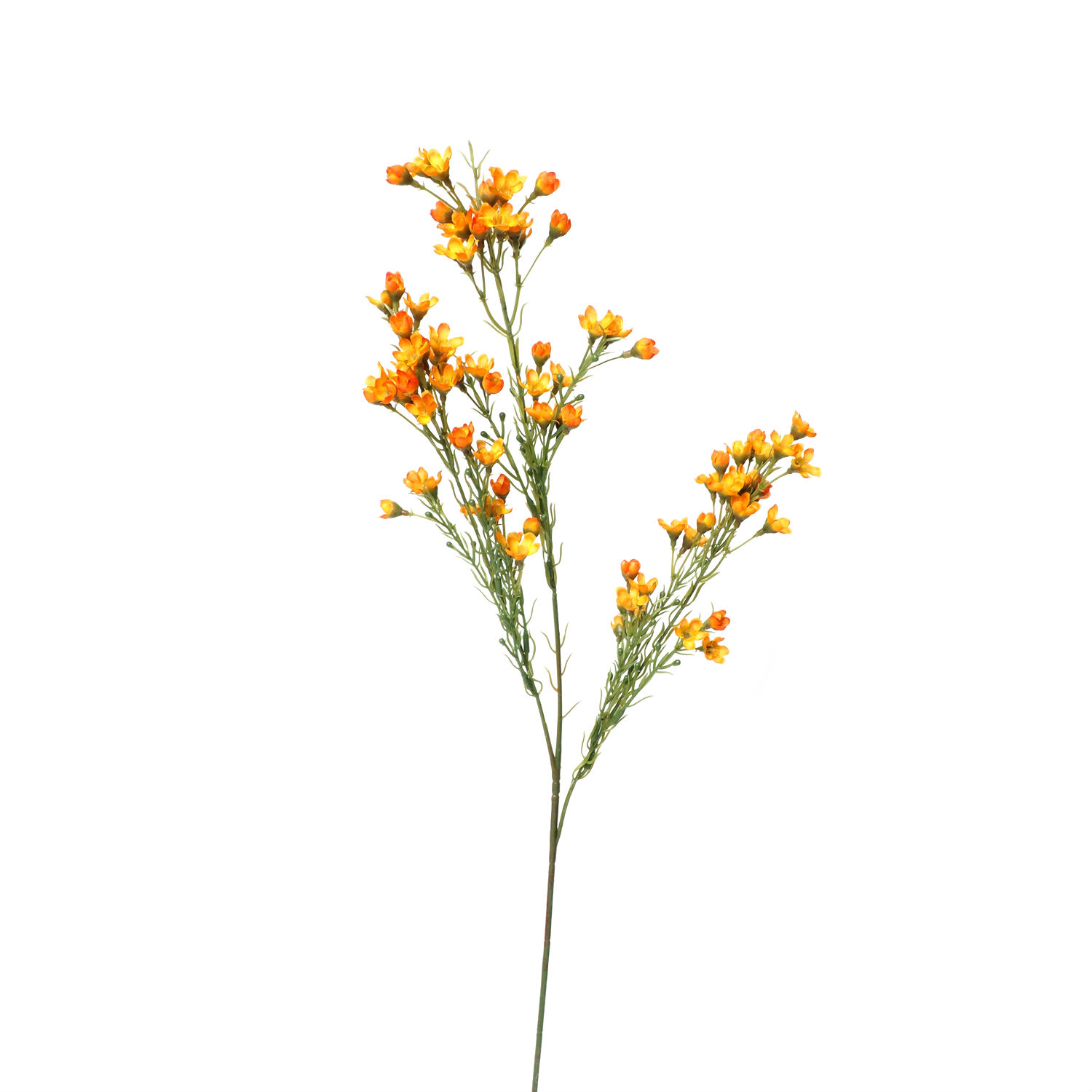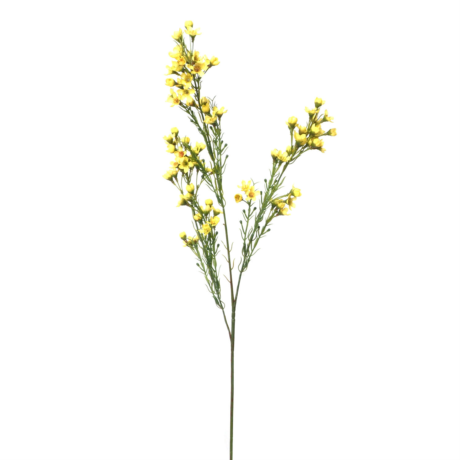This artificial flower is made of polyester and flaunts meticulous detailing. It has a long slender stem with small yellow flowers adorned with slim green leaves. The flower closely resembles real flowers and is excellent for indoor decor.