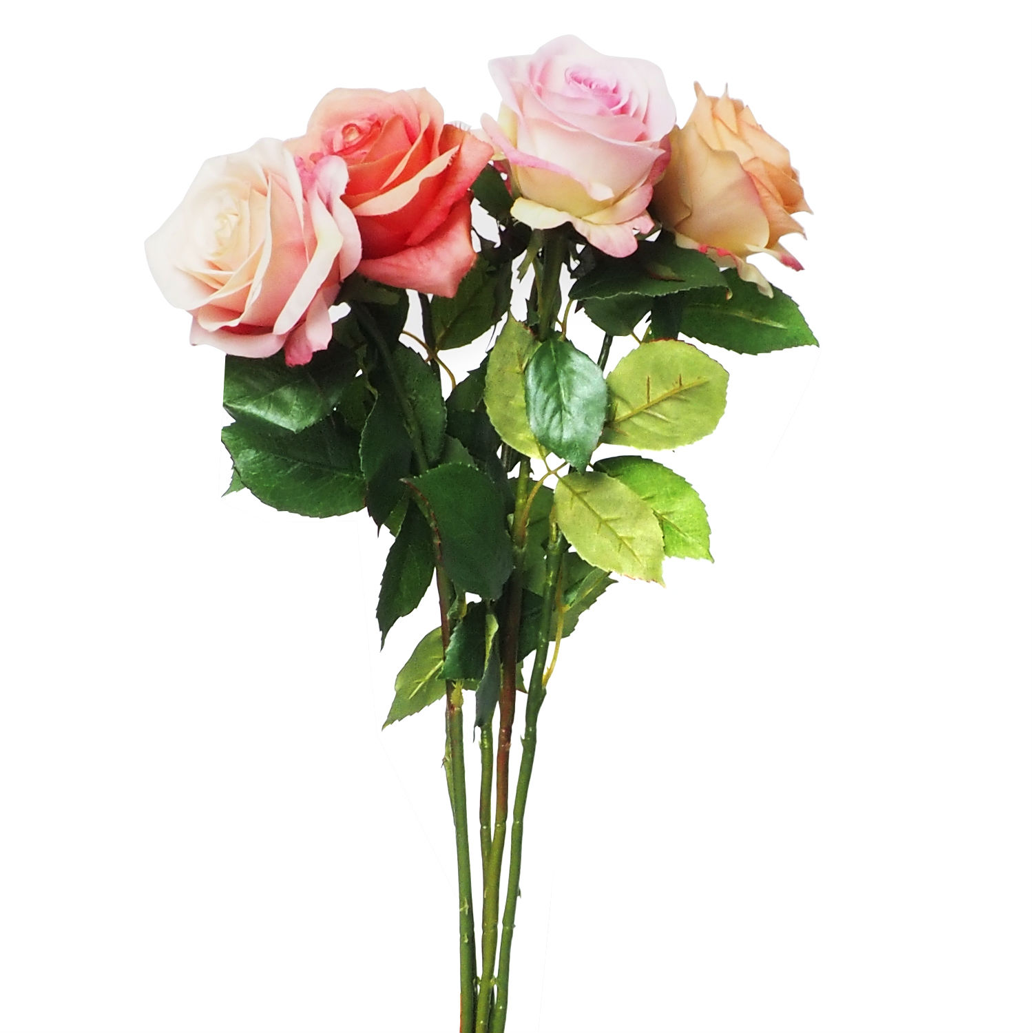 This startlingly realistic rose bundle is made of polyester with exquisite workmanship. The flower petals are specially handled into 2 tones, which flaunt a vibrant look in the shades of pink and yellow. Coming with 3 stems, it can be set off as part of an arrangement and make a stunning home décor for a festive atmosphere.