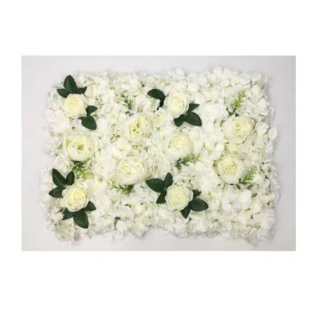 This artificial flower wall mixed hydrangea and rose is made of plastic which is weather. It is a good decoration to your home or workplace.