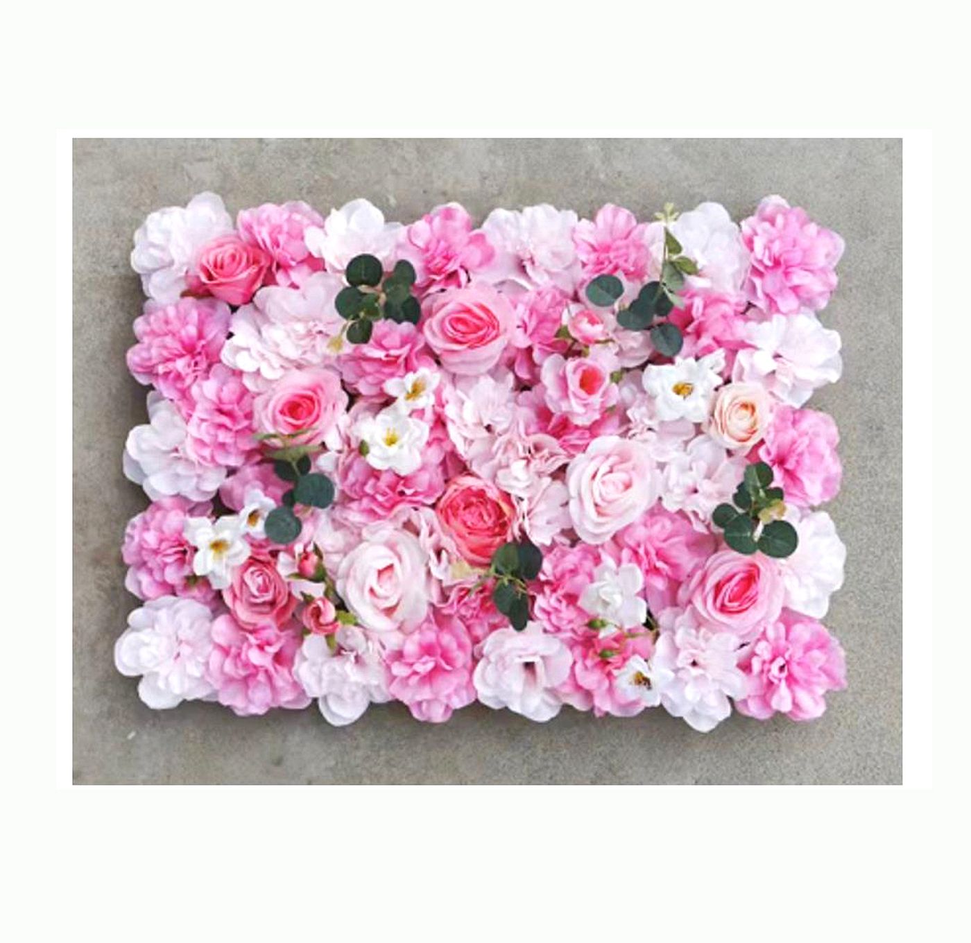 This artificial flower wall mixed hydrangea and rose is made of plastic which is weather. It is a good decoration to your home or workplace.