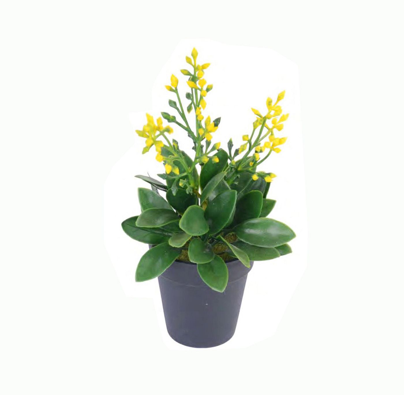 The artificial plant of the table plant tree on a plastic base.