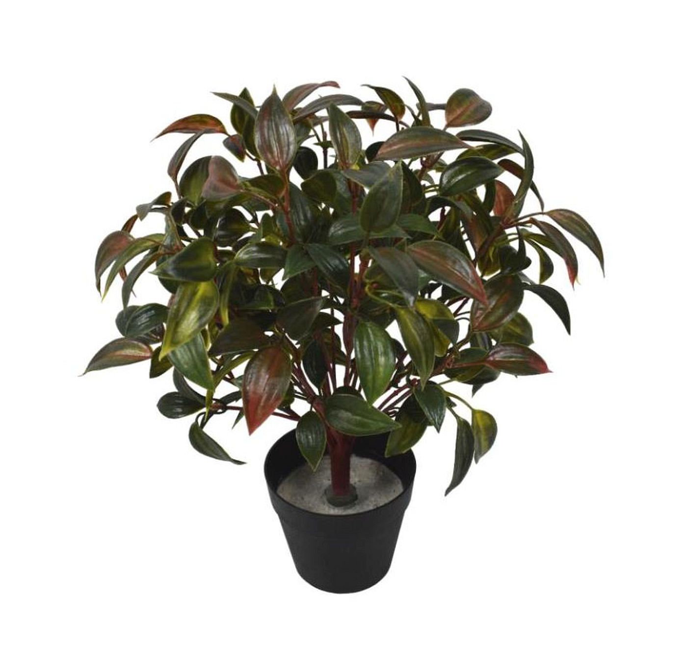 The artificial plant of the table plant tree on a plastic base.
