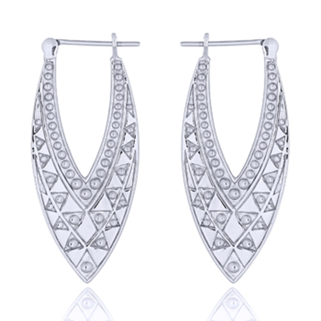 Artisan Elliptical Silver 925 Rhodium Plated Hoop Earrings