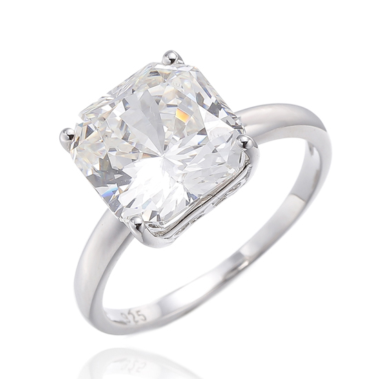 Asscher Diamond G Cubic Zircon Rhodium Plating Silver Ring