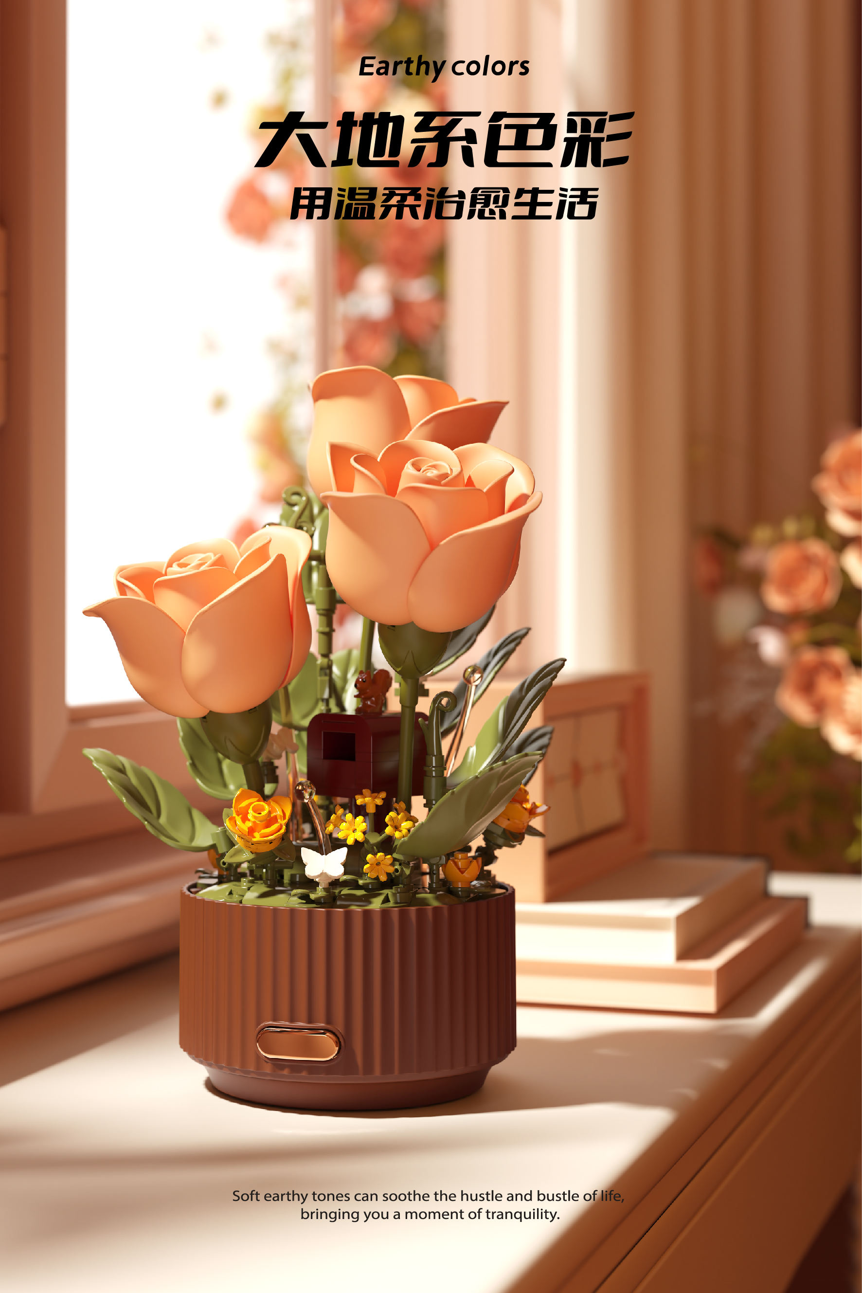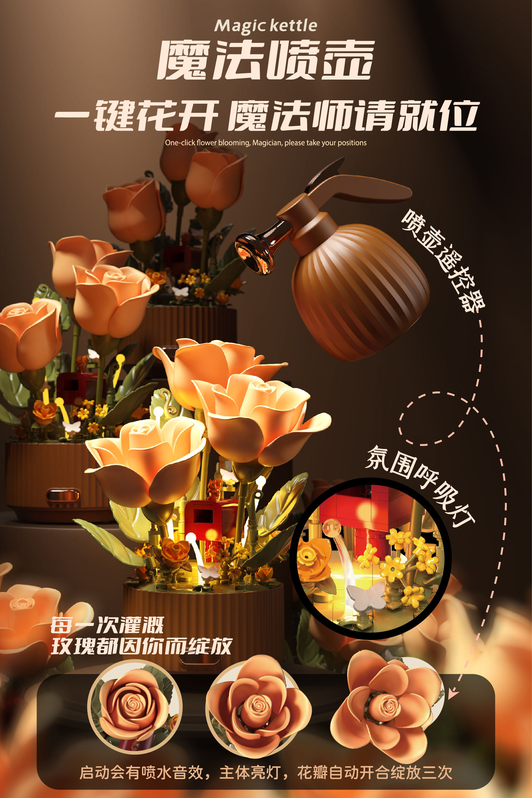 Assembly Handmade 3D Pop-up DIY Building Blocks Blooming Garden Dynamic Lighting Eternal Flower Blocks Bloomy Rose