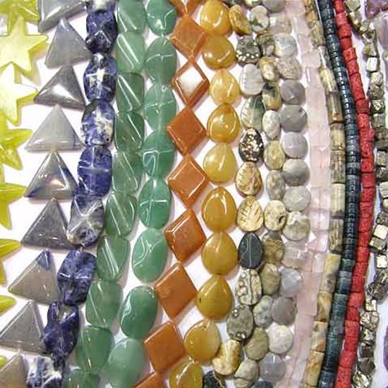 • These assorted stones are cut into different shapes (polygon, star, pear, rondel, diamond, etc).