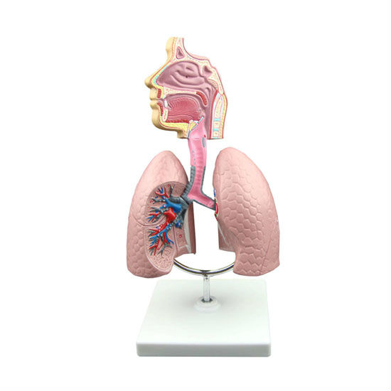 This full size normal cut-away of right side of lung shows bronchus ,arteries vein,two lymph nodes bronchial passages and trachea bifurcation.