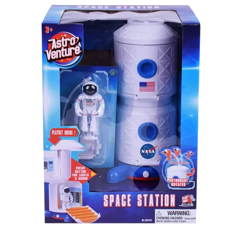 Featuring a 2-Level Space Station. Light & Sound. Astronaut figure and hover included. Astronaut can do space walk when attached to the tether at the top of space station.