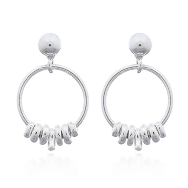 Asymmetric Silver Gravels in Circle Stud Earrings