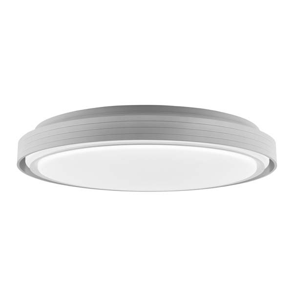 This is a round ceiling light. It is round as a whole. The frame is light gray with a linear texture design, and the middle is a white light - emitting surface. It has a simple and modern shape and is often used for lighting in indoor spaces, which can provide a bright and neat light effect for the room.