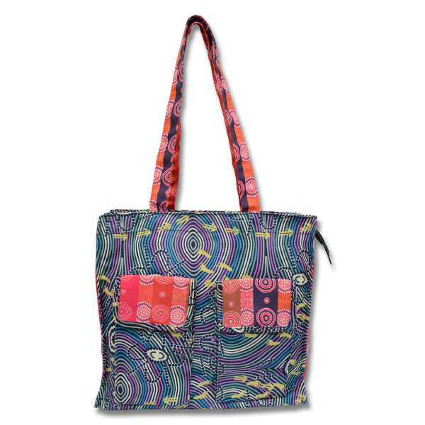 Australian Aboriginal Shoulder Bag - Women Sitting & Men Hunting