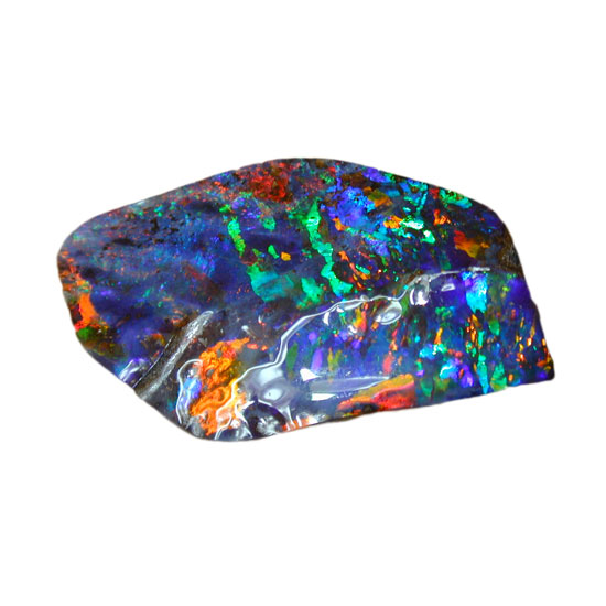 Featured is a valuable solid boulder opal from Australia. Its mysterious glimmers in blue, orange and green create a dazzling light show. This amazing stone is perfect for fine jewelry crafts with its heavenly beauty.