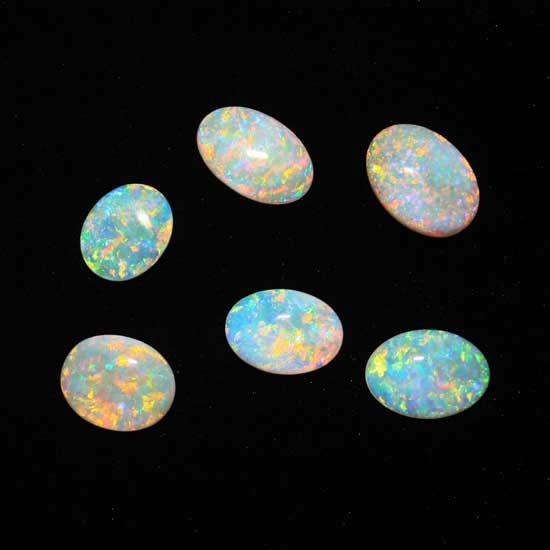 Displayed are different Australian opal stones with a natural oval silhouette. The stone unleashes aquatic shine with a fluorescent quality. Treat yourself to the color therapy of this awesome Australian opal.