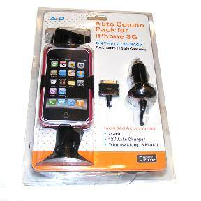 This is a pack of automobile phone accessories for iPhone 3G. The pack includes a case and a dock that holds and protects the phone. To mount the iPhone on the car window, there is a window clamp and window mount in the combo pack.