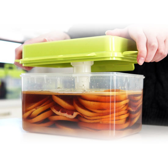 Featured with a green finish, this auto press salting food container makes preserved food in a convenient and neat way. Equipped with a handle on top, this portable food container is easy to carry. The lock function keeps the food fresh and away from contamination.