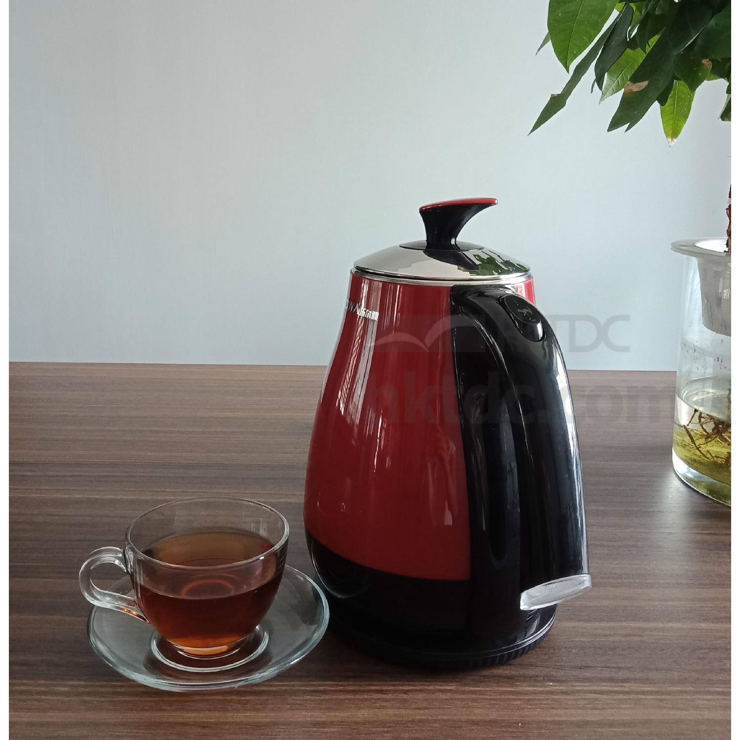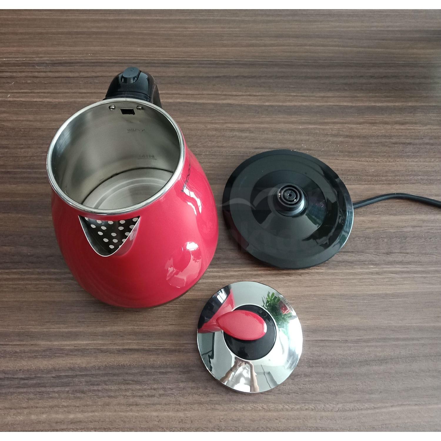 This detachable lid European style jug kettle 1.5L comes in two color combination, red and black, The detachable lid is English style for a care-free lid open and cover for life time use. The inner layer is SUS304 ss and out wall PP plastic for cool touch exterior for anti-scald and energy saving purpose.