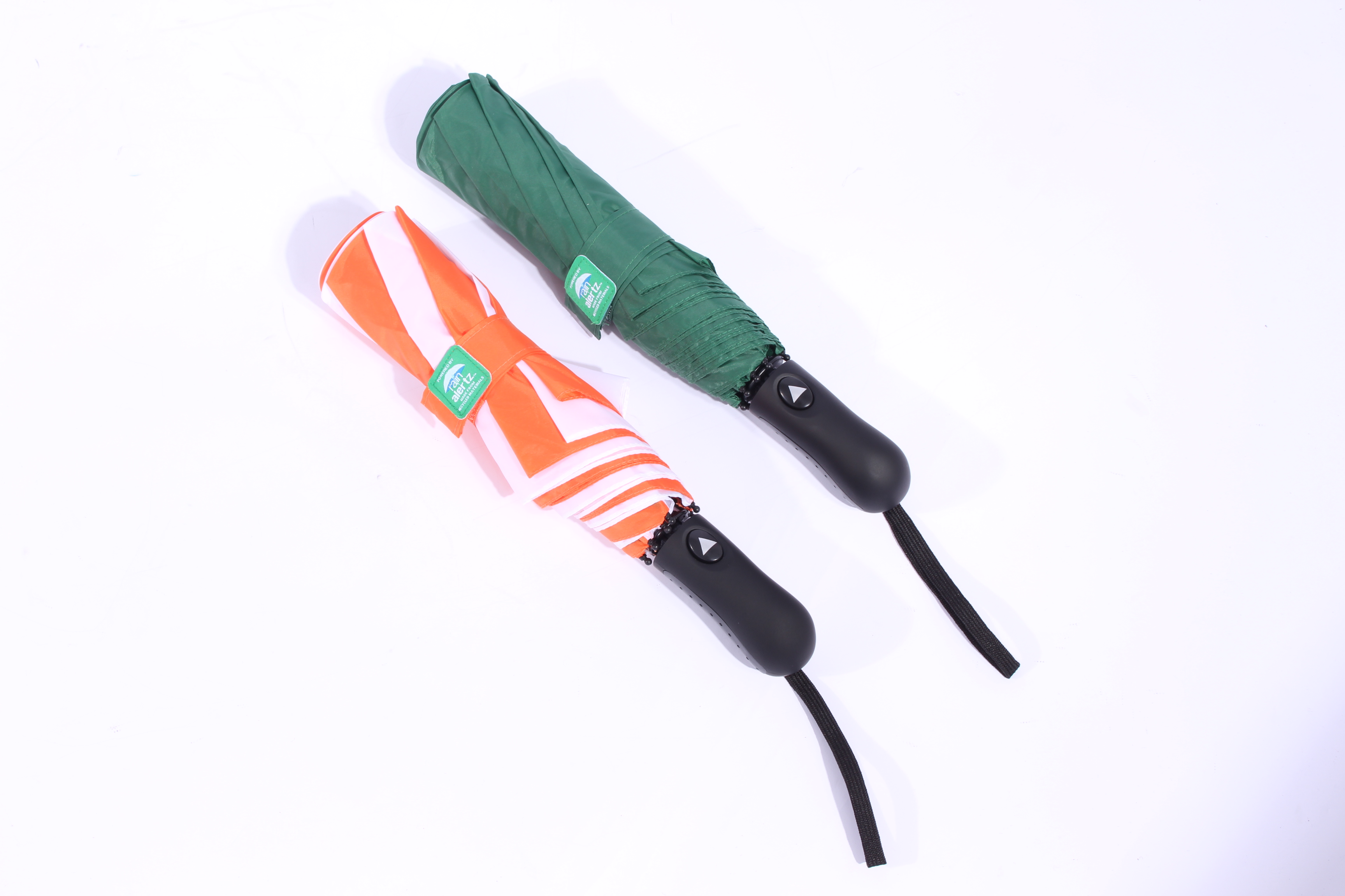 3) frame: Metal frame, fiberglass ribs, Auto open 3 fold umbrellas,