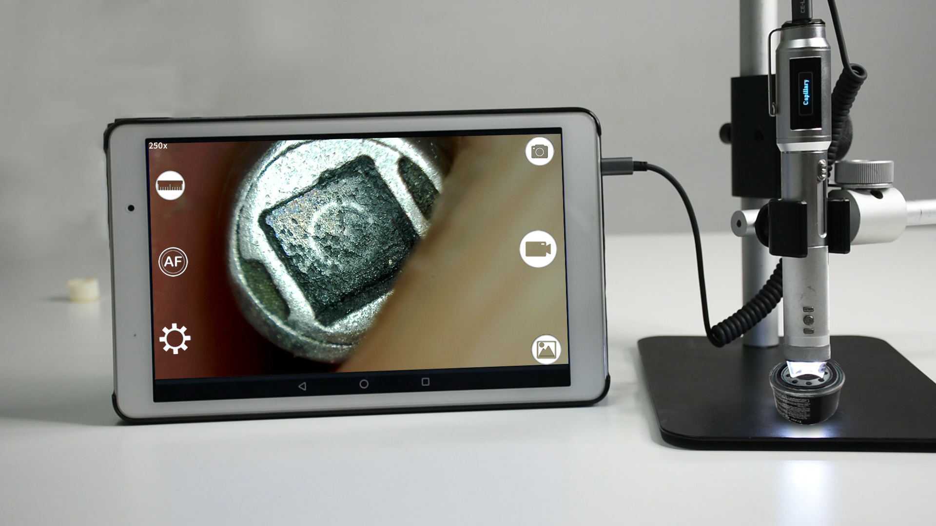 This digital microscope has a simple, handy design, yet combines high-precision, high-speed autofocus with high image quality. The optical zoom is up to 250x, allowing for a variety of visual inspections. The magnification can be changed from low to high without changing lenses. Measurements can be performed using a dedicated application.
