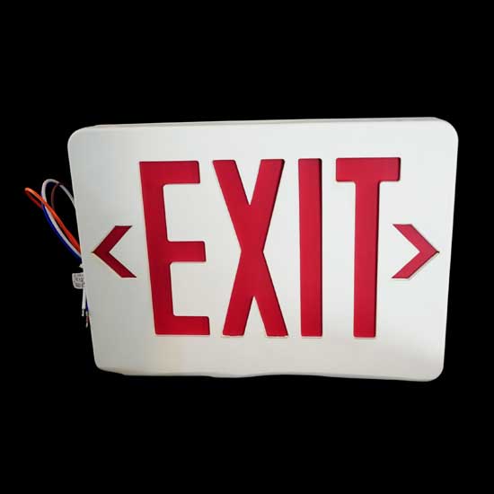 This is an automatic exit sign for emergency lighting. The panel color comes in a red or green color. This emergency light is widely used in damp locations.