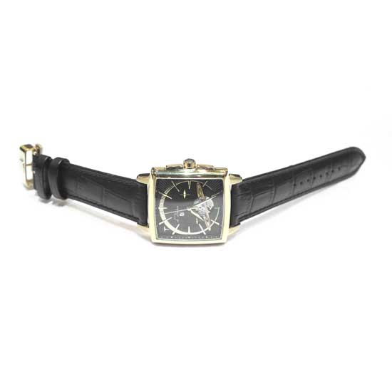 This is a men's automatic wristwatch that features a sophisticated dial in black with golden details. The high-quality leather bands offer enhanced comfort. Add a unique and elegant touch to your daily look with this stylish watch.