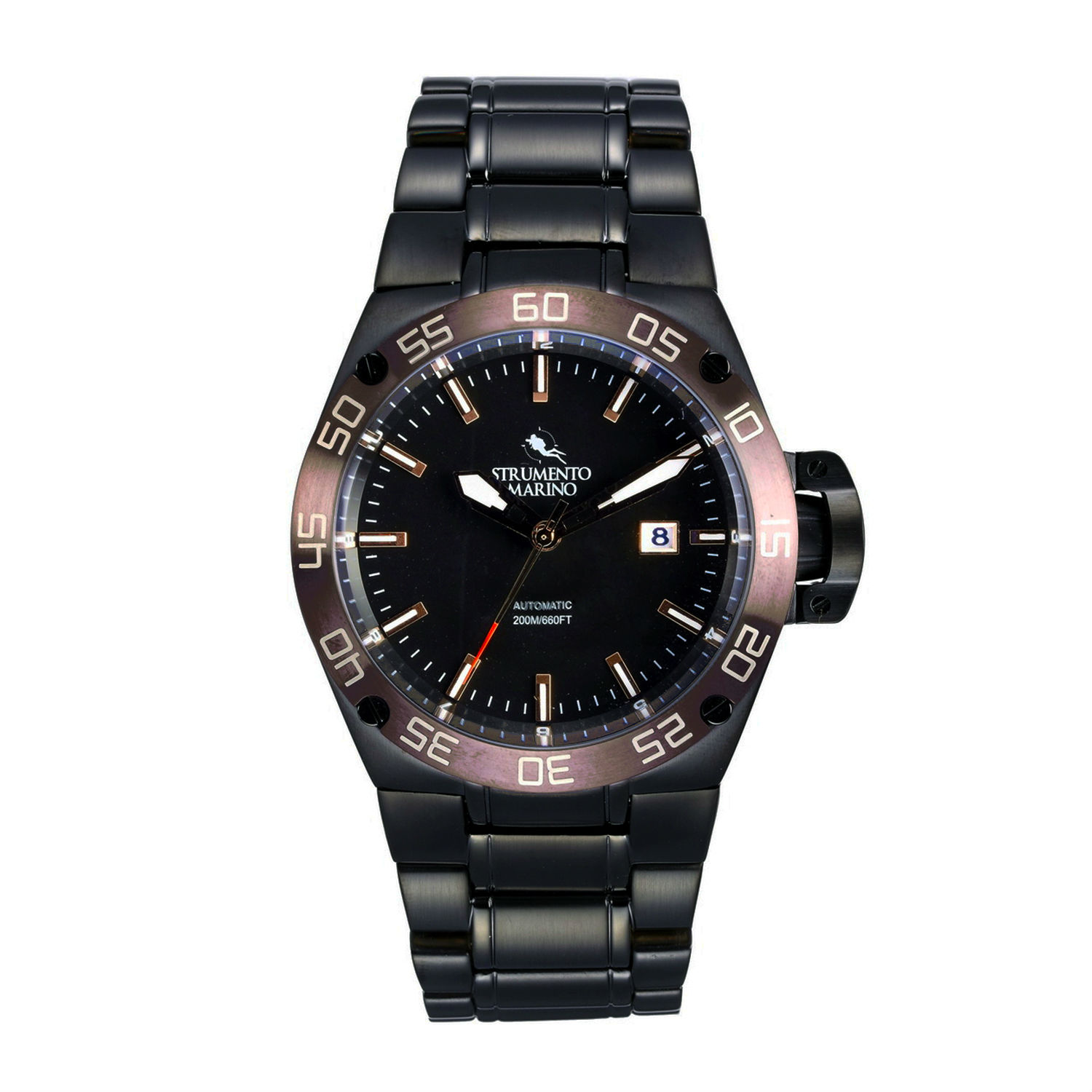 Highlighted here is an automatic watch with a stainless steel case. It has a solid steel band and is IP plated to offer a stylish black tone. This watch comes with luminous indexes and hands for easy reading.