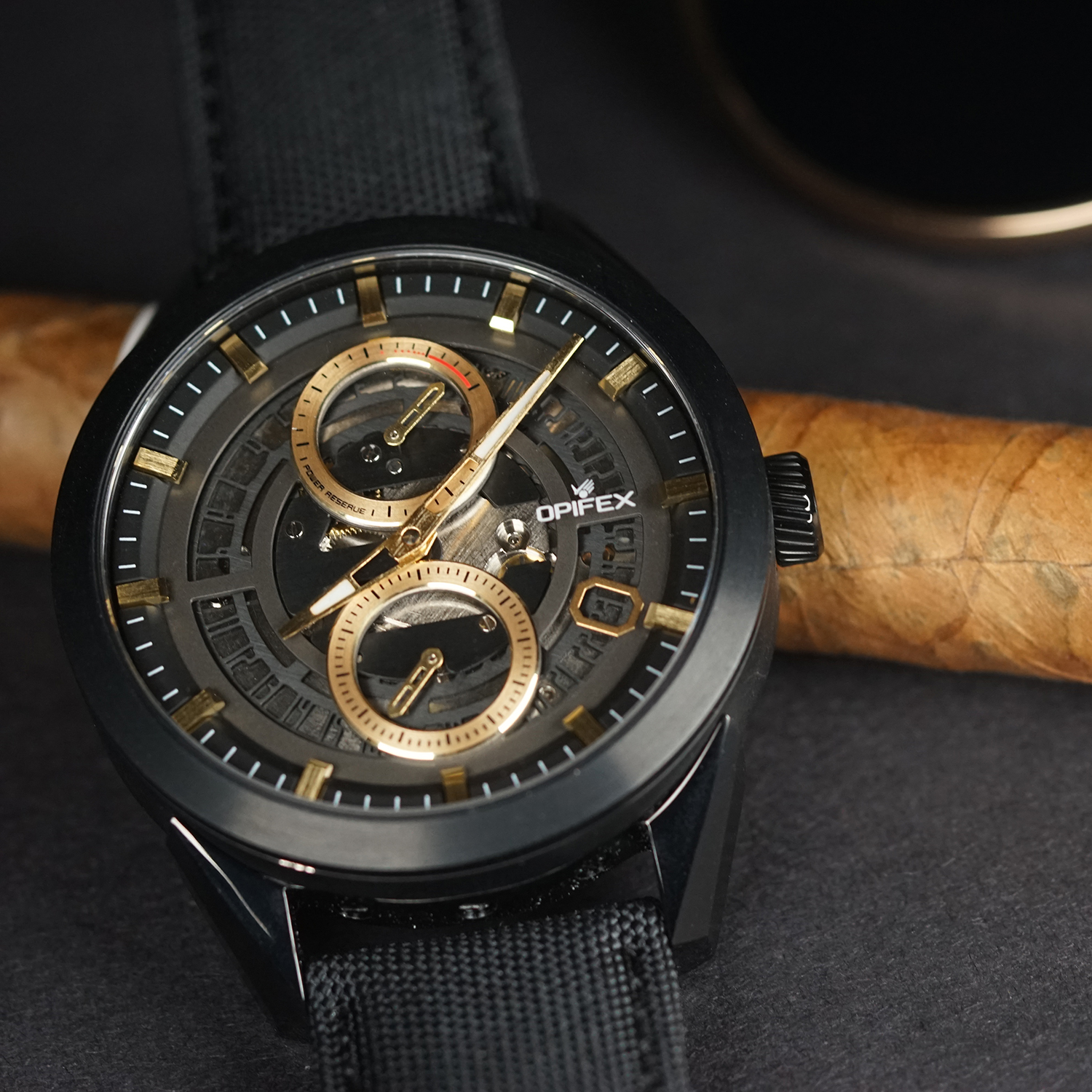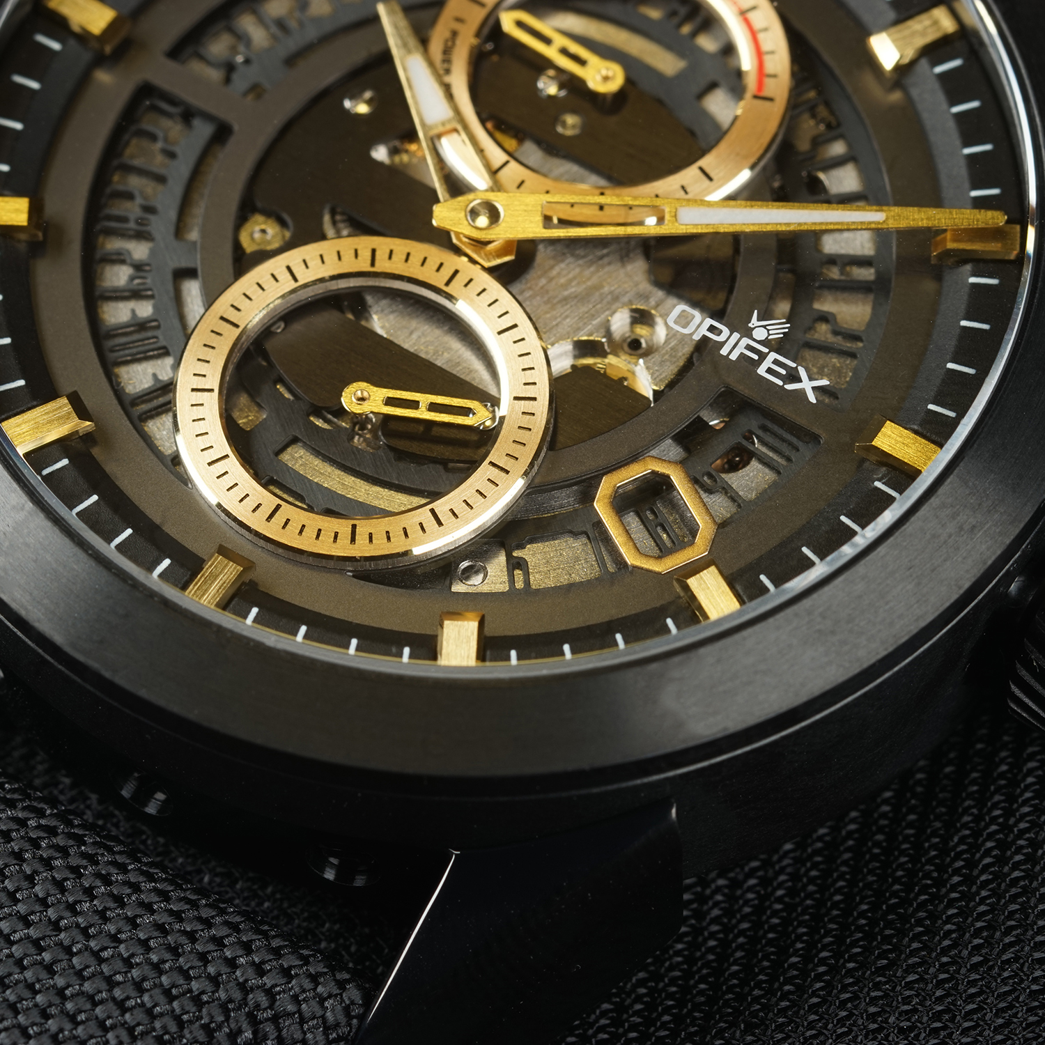• OPIFEX Venture Champagne - Black Titanium Automatic Watch.