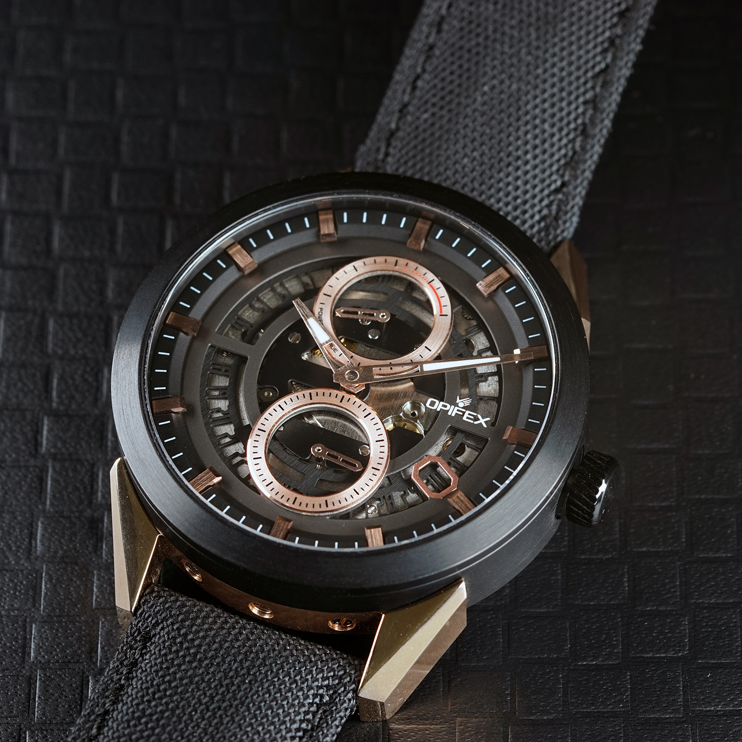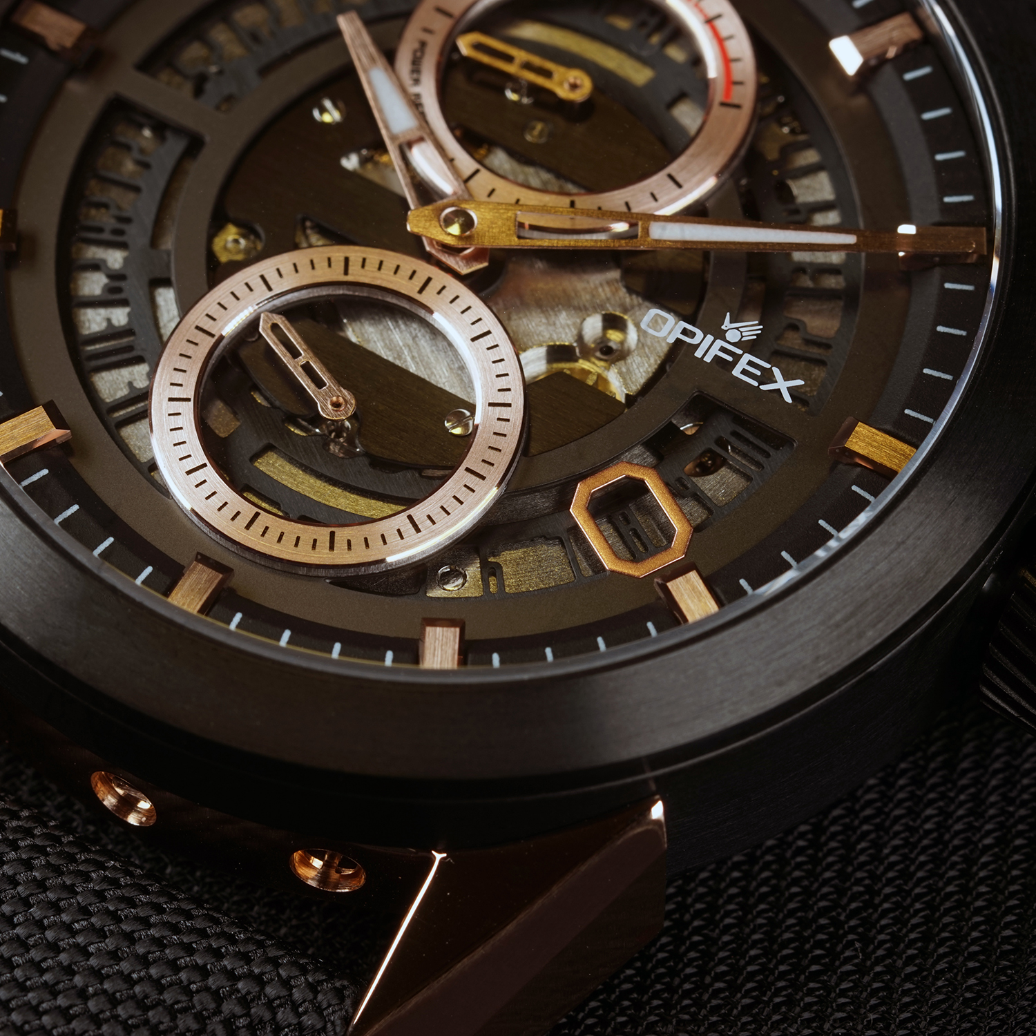 • OPIFEX Venture Rosegold - Black Titanium Automatic Watch.