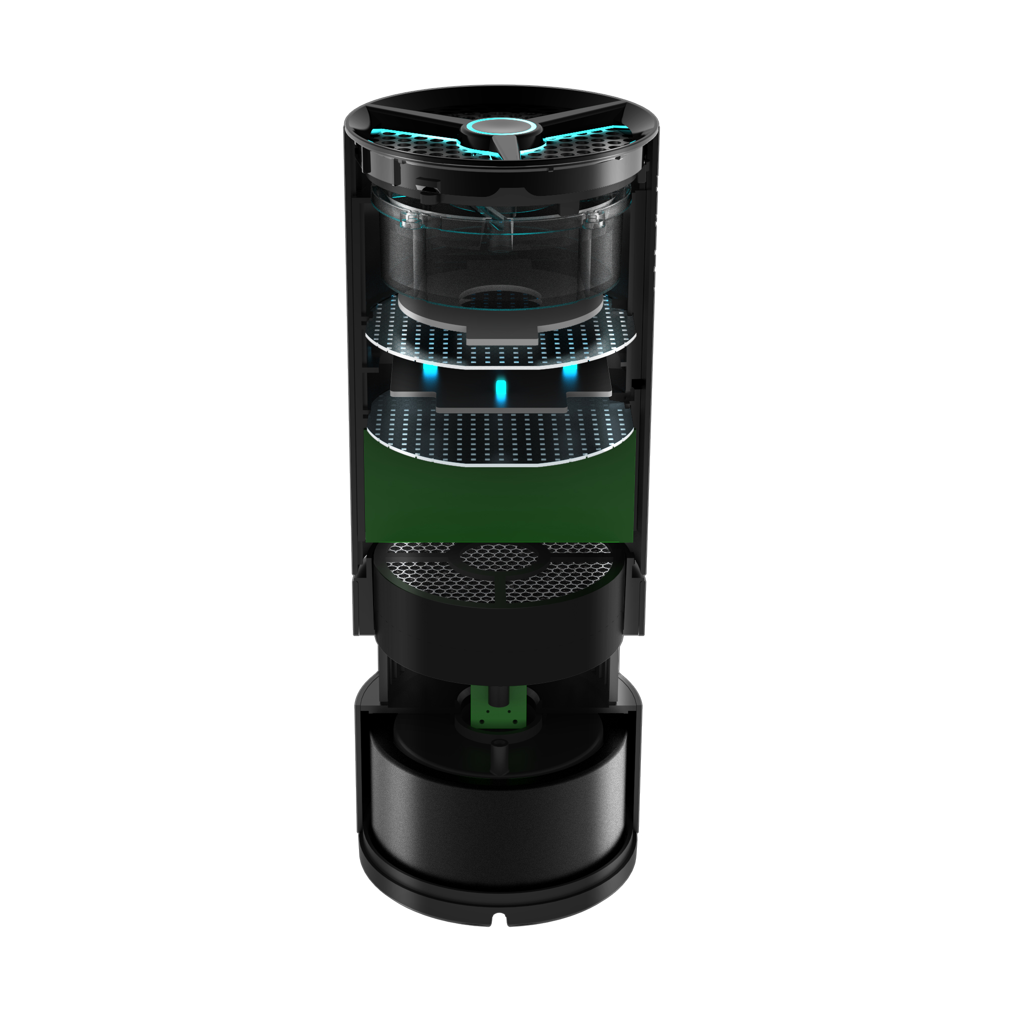Filters are critical parts of an air purifier. Apart from photocatalyst filters, Huntkey air purifiers are also built with HEPA (High Efficiency Particulate Air Filter) filters to create a high-efficient filtering system inside in light of a drawback of photocatalyst that can't solve the problem of particulates such as soot and dirt. Therefore, inside a Huntkey air purifier, the incoming air will firstly pass through HEPA filters to capture large particles like soot, dirt, haze, and then it will come to the photocatalyst filter to remove airborne viruses, bacteria, spores, and mold which are rendered into carbon dioxide and water.