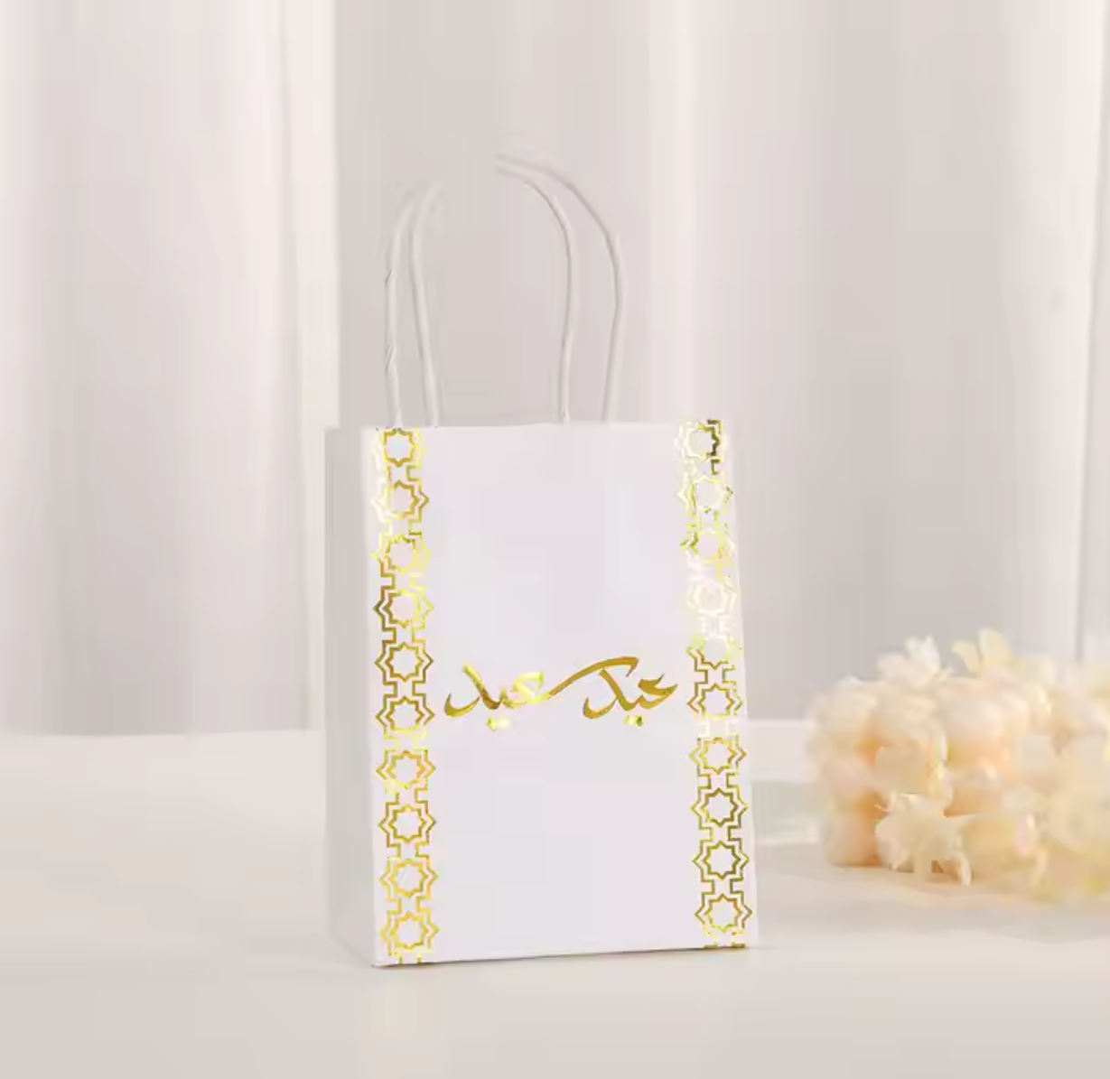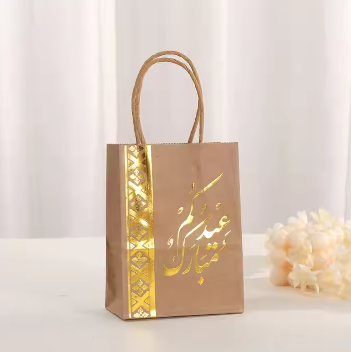 Autumn Winter White Kraft Cardboard Handbag Exquisite Bronzing Print Hot Stamping Logo Fur Packaging Gift Bag for Crafts