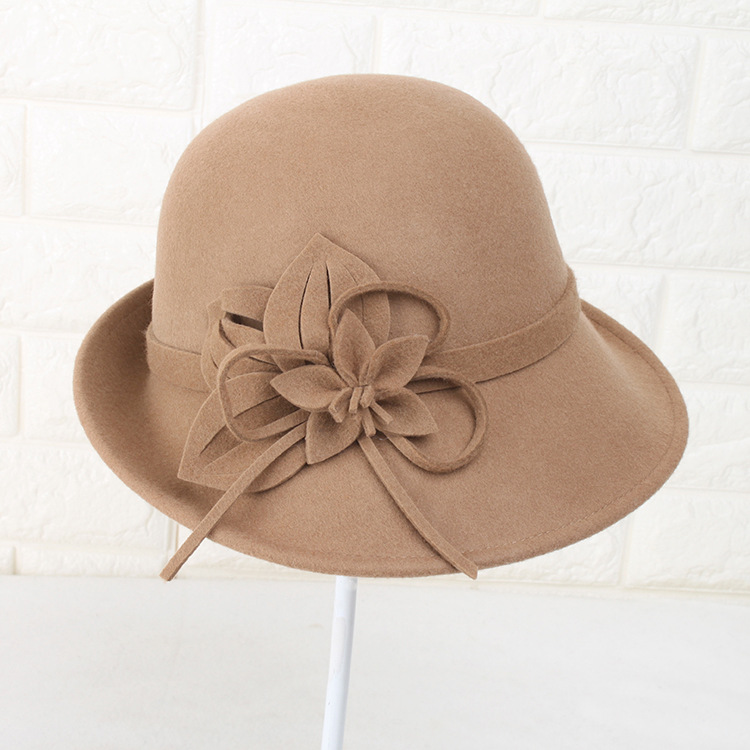 Autumn and winter hat women's wool felt hat lady's flower women's wool top hat winter elegant pot hat wool hat
