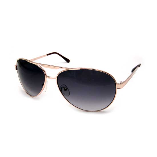 This pair of aviator sunglasses offers reliable protection from UV radiation. The stylish design lends an edgy and glamorous touch to your look. The black tinted lenses finish these fashionable sunglasses.