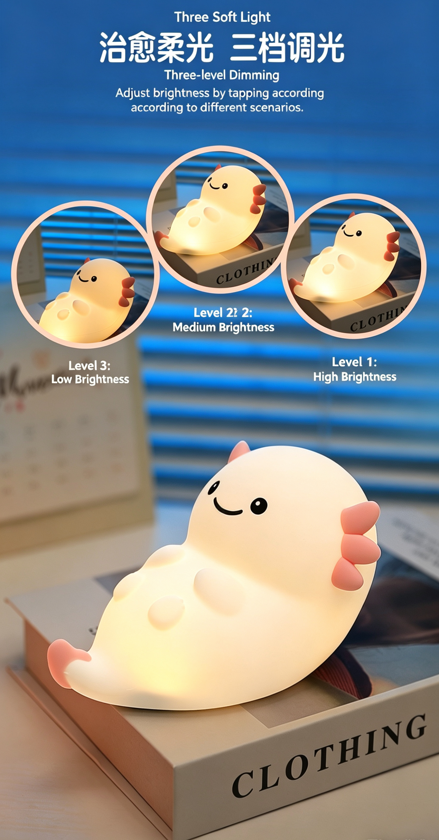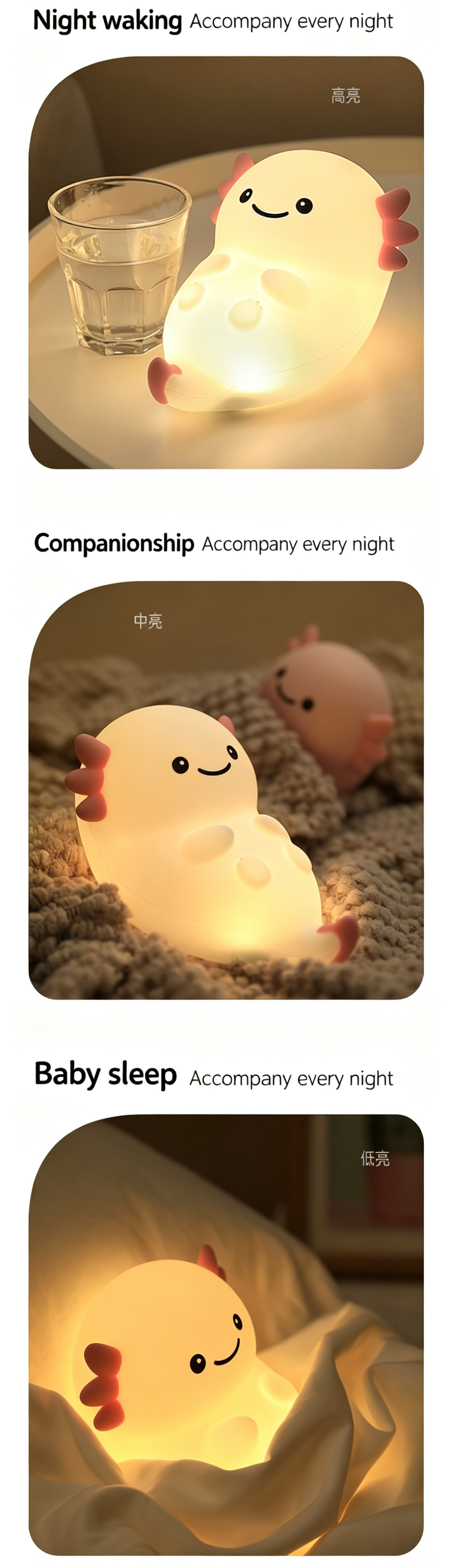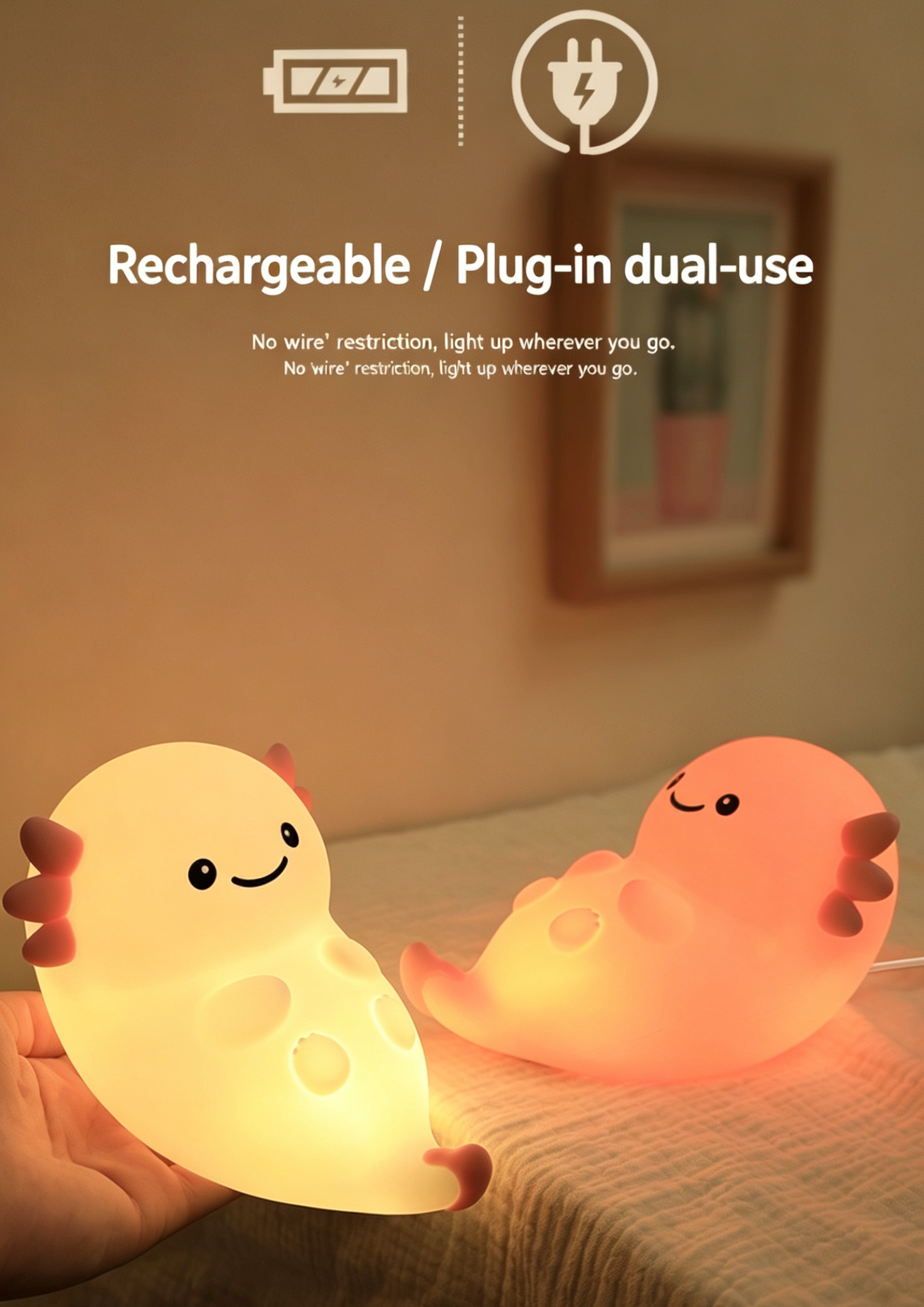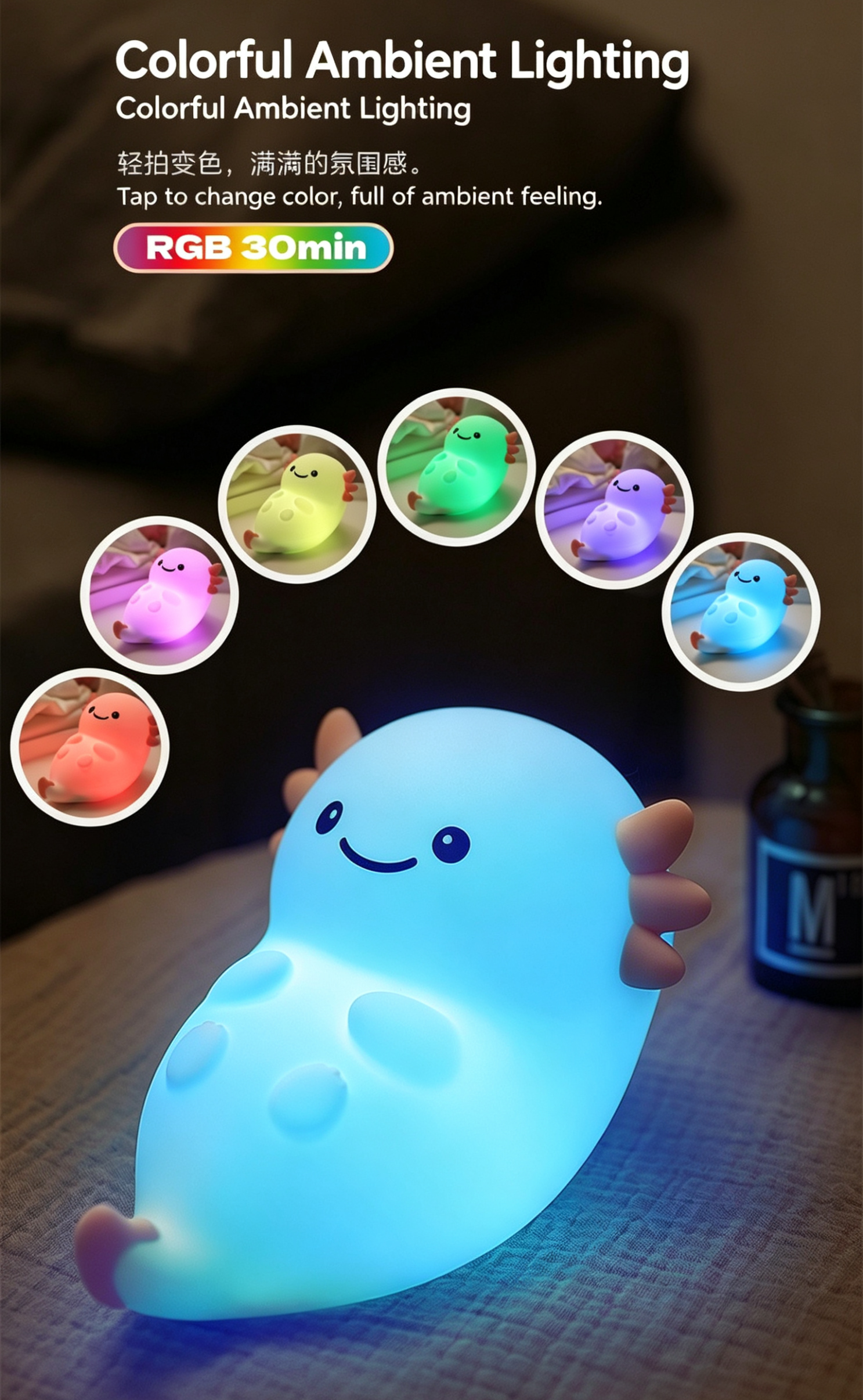 Axolotl Cute Night Light, Tap Control RGB Ambient Lamp, Rechargeable Silicone Bedside Nightlight, Viral Same Style