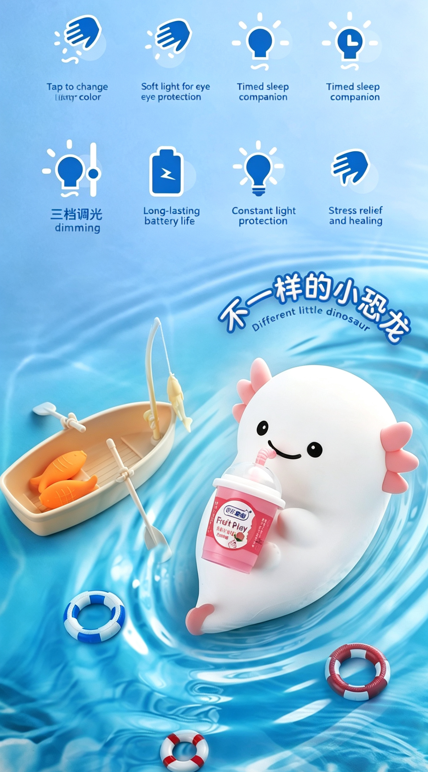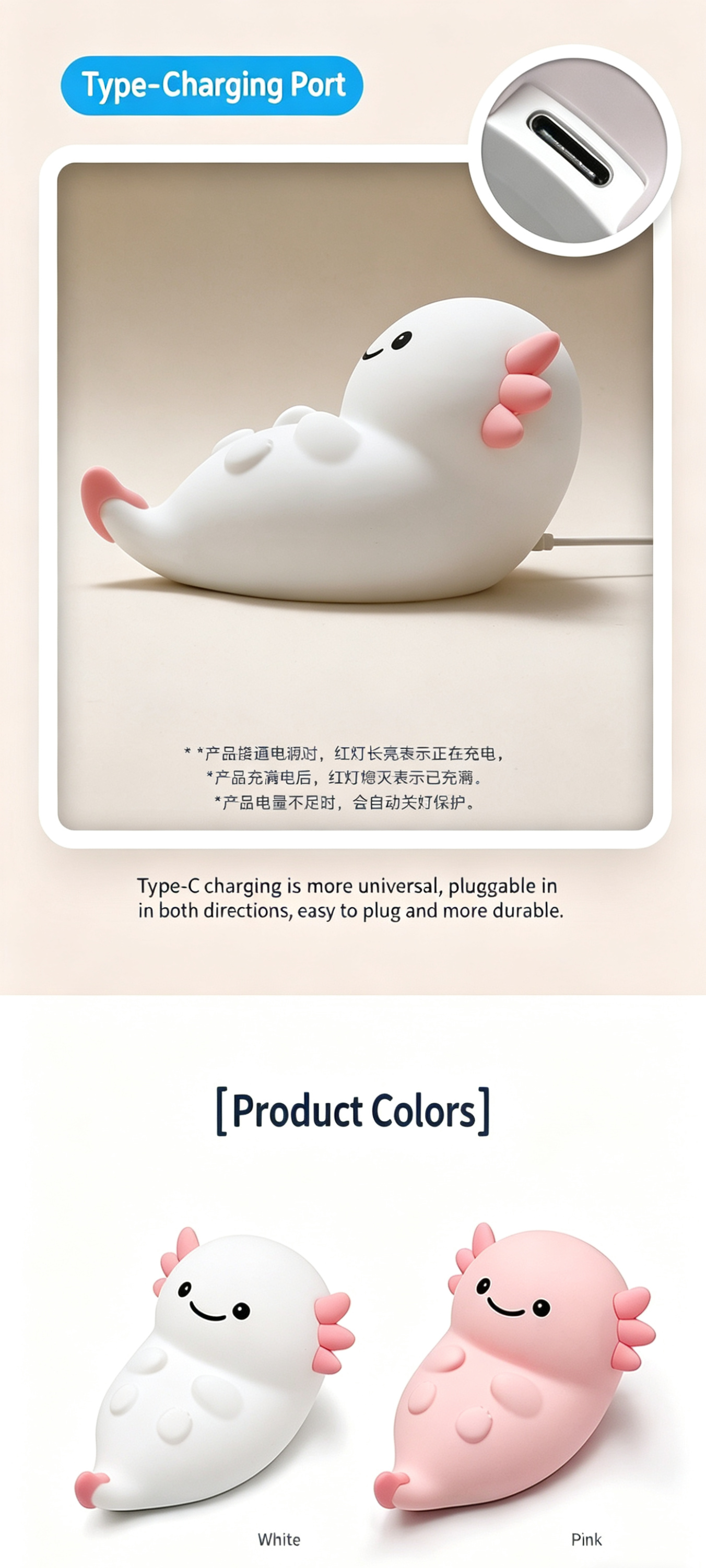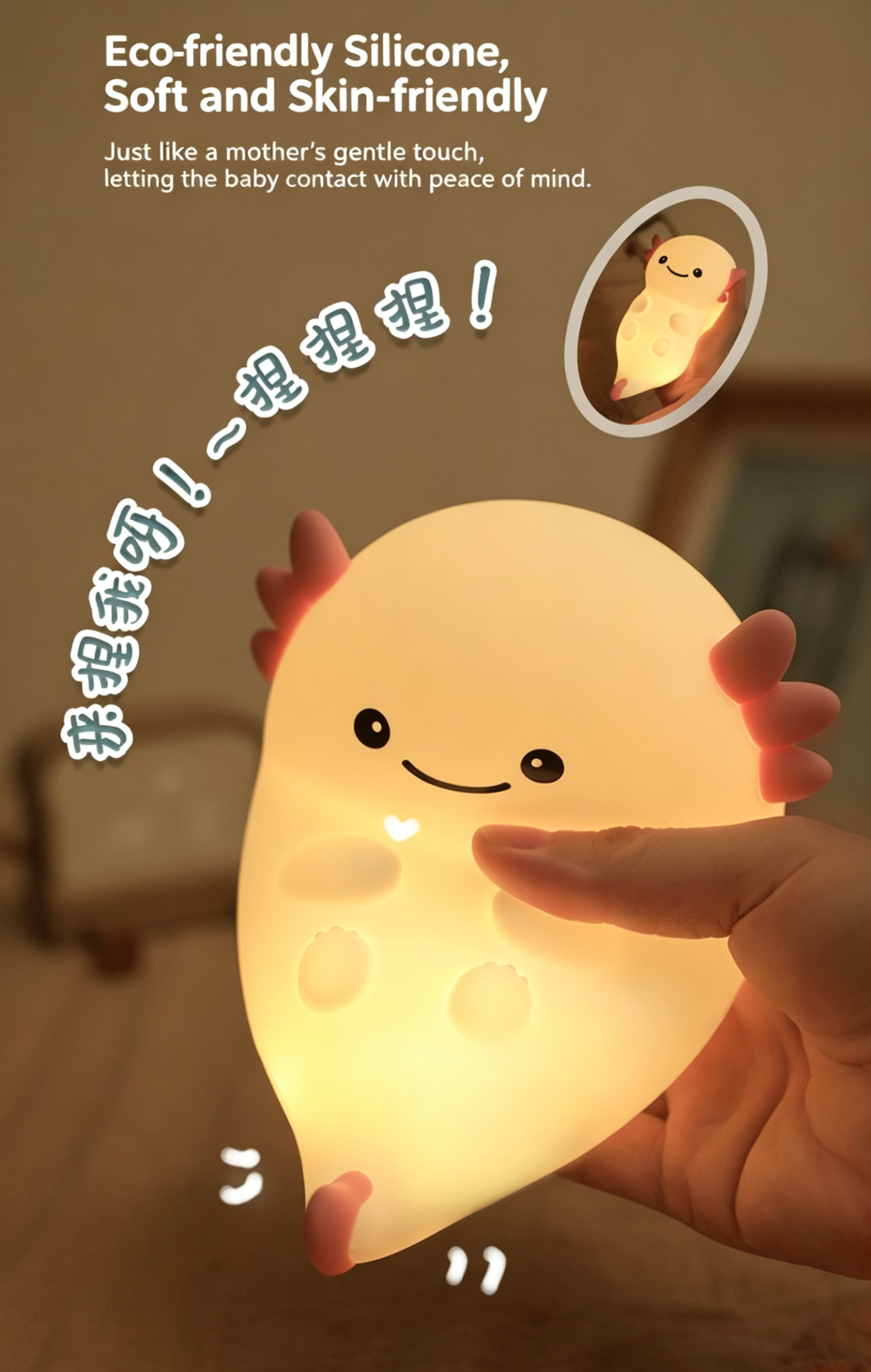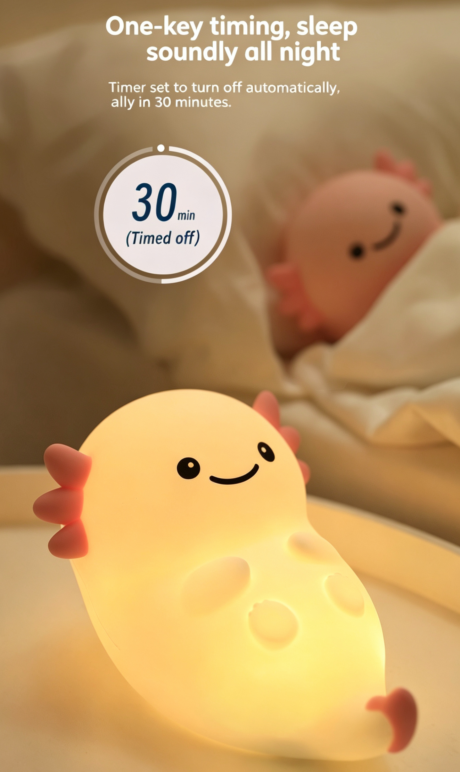 This adorable axolotl-shaped night light is a viral favorite, blending cute design with practical functions for kids and adults.
