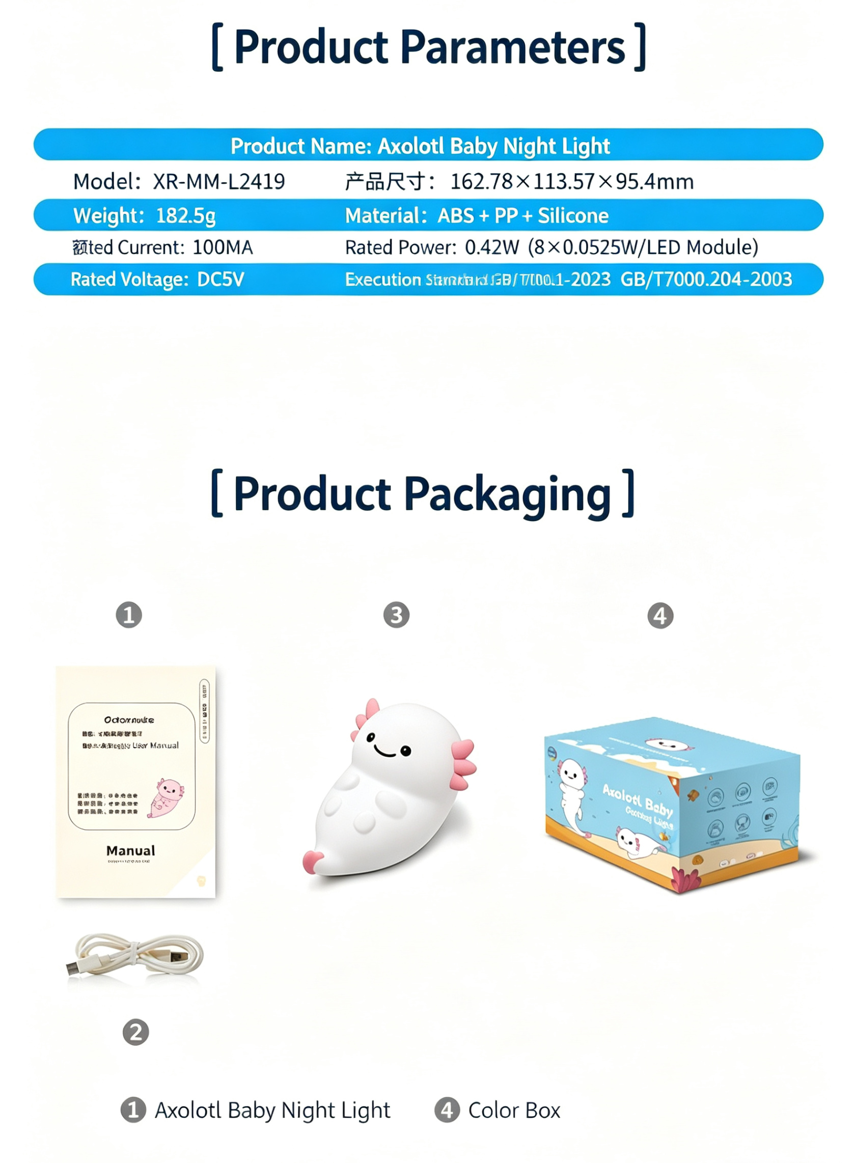 1× Axolotl Night Light, 1× Type-C Cable, 1× Manual, 1× Gift Box