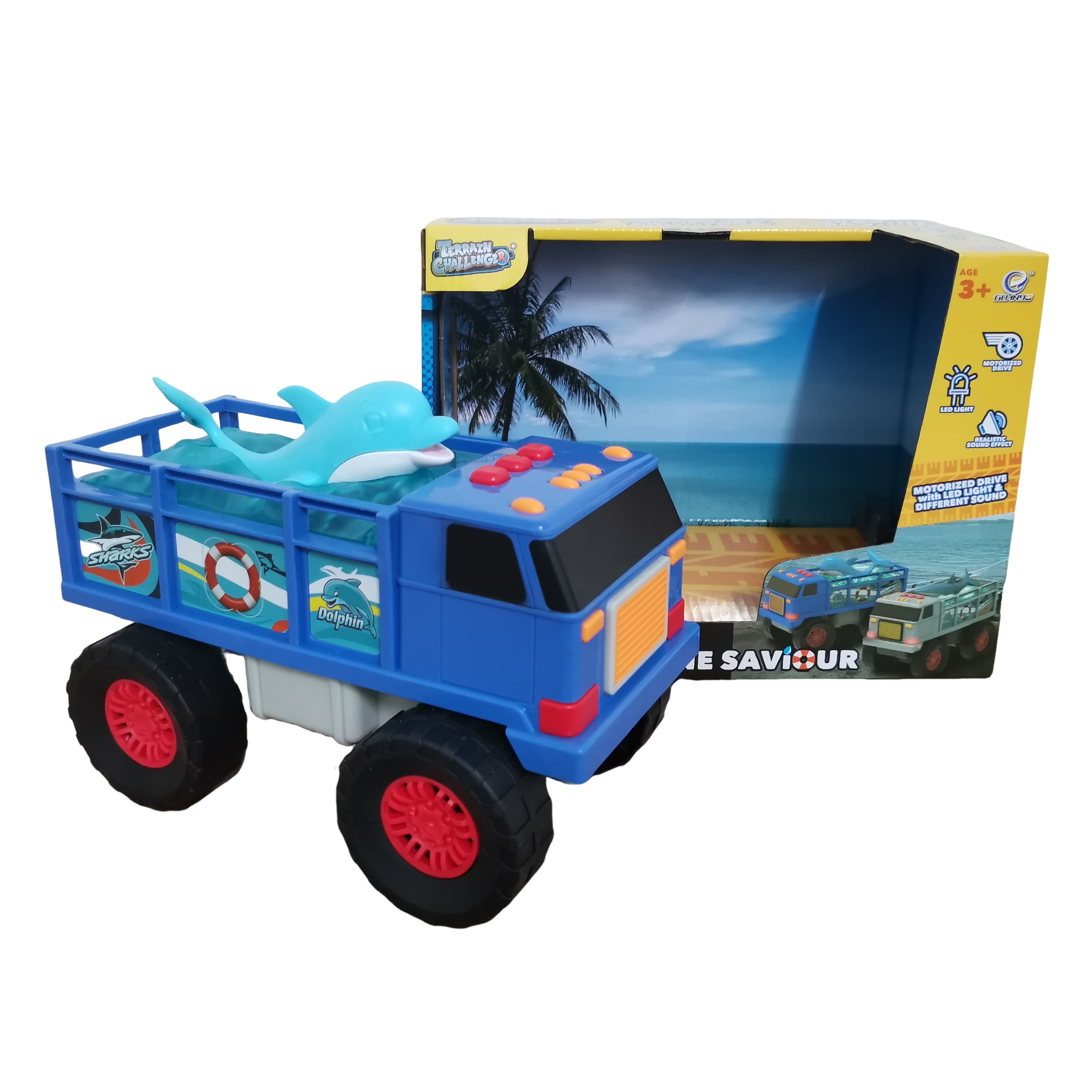 B/O Blue Truck With Dolphin Set Car With Light And Sound Toy Vehicle For Kids