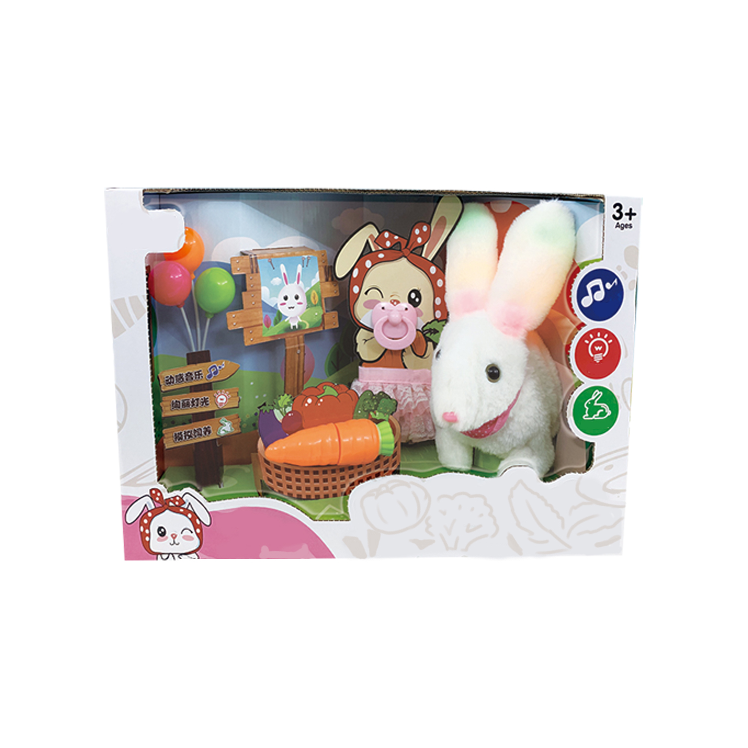 Cute fluffy rabbit which move its’ nose & ears, and jumps around.