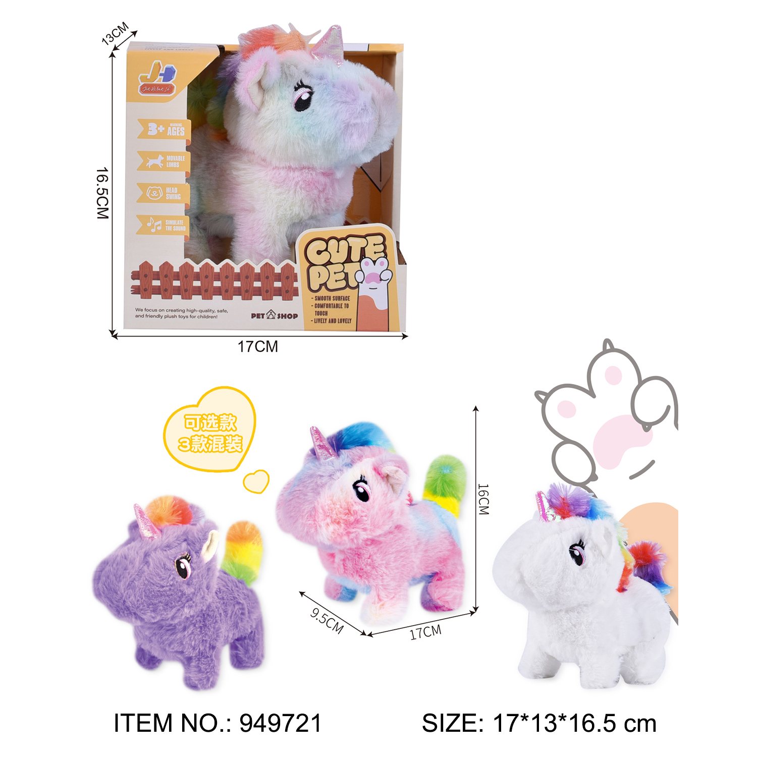 B/O WALKING PLUSH UNICORM PLAYSET WITH IC(USE 2 PCS AA NOT INCLUDED),TEST REPORTS:EN71 PART1-2-3 AND PHTHALATE TEST AND EN62115 AND CE AND ASTM AND CPSIA(HR4040) AND CPC.