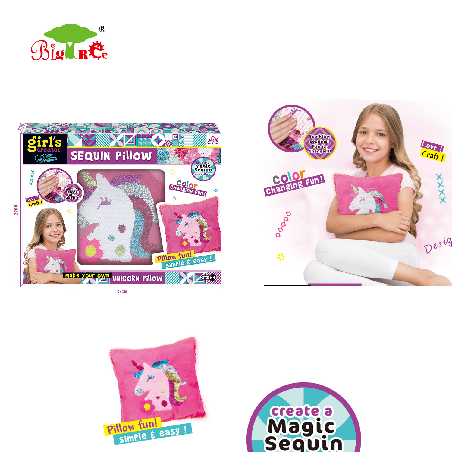 B1213063 Craft Toys Changing Color Unicorn Owl Sequin Pillow For Children