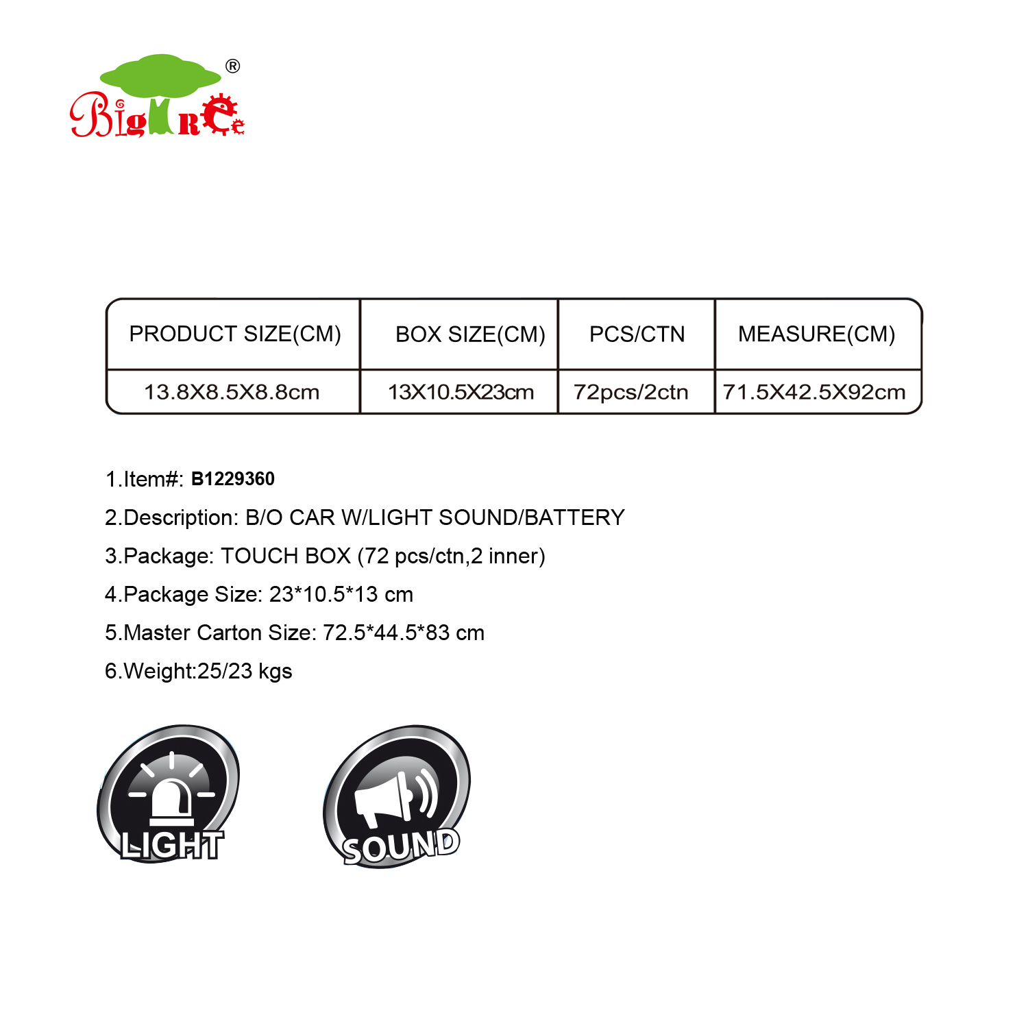 2.Description: B/O CAR W/LIGHT SOUND/BATTERY