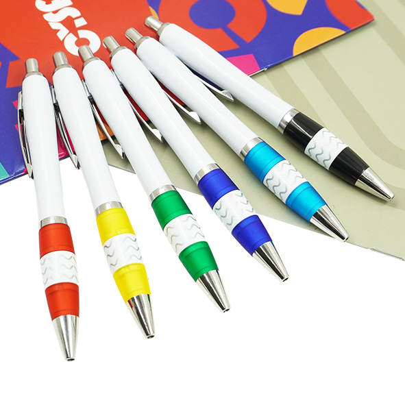 This smooth-writing plastic pen features several bold color choices at an affordable price.