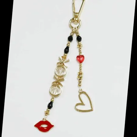 Add a playful pop of color to your bag with Lip & Heart Charm