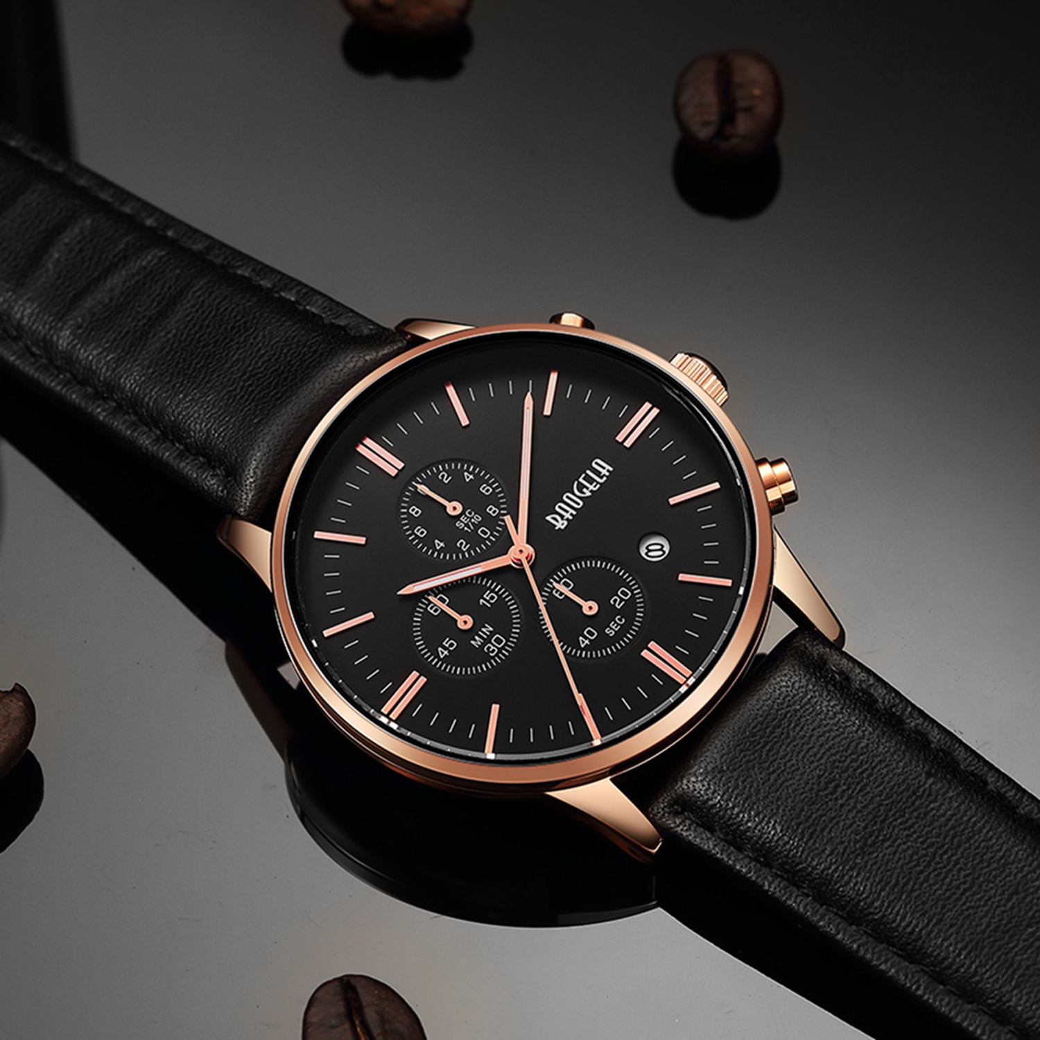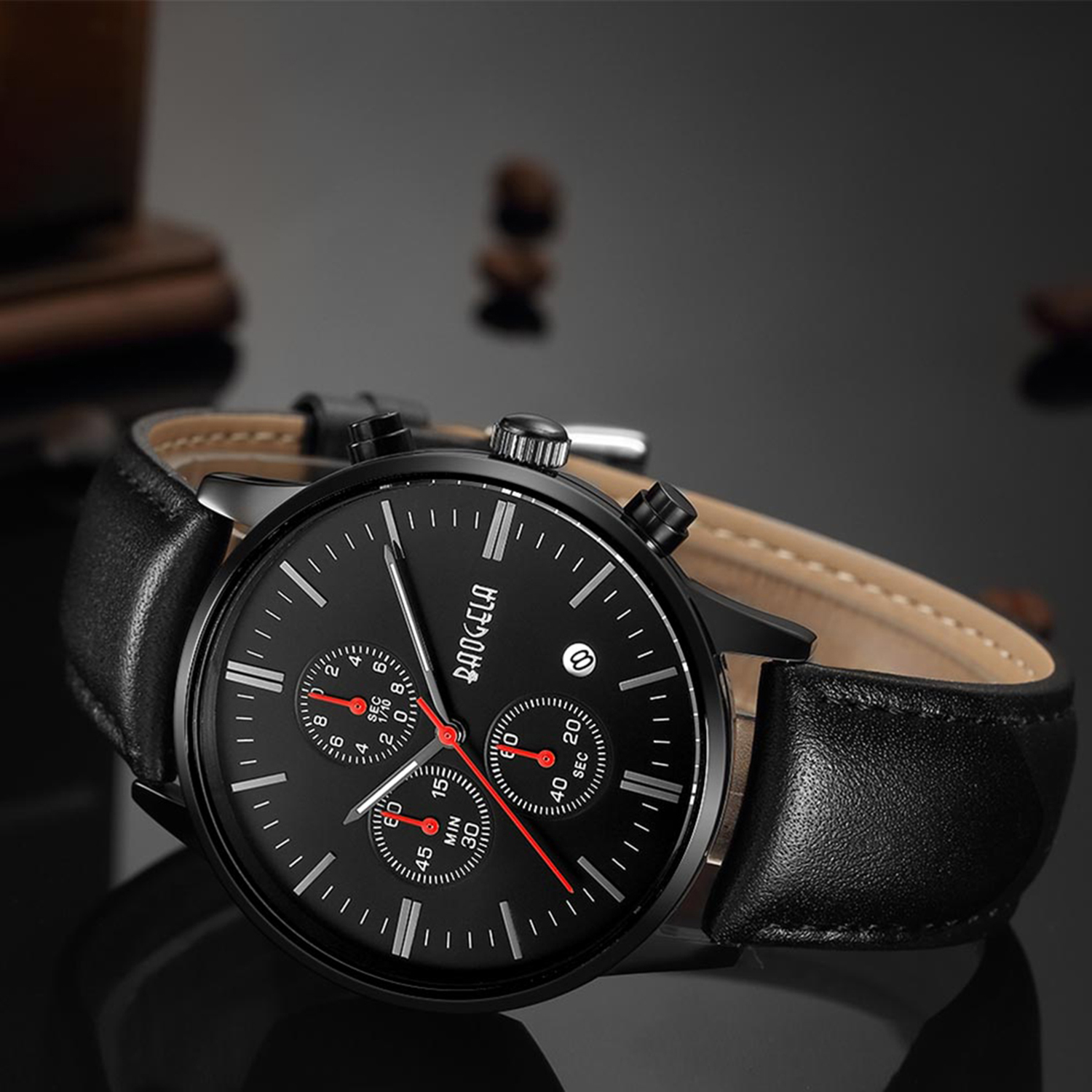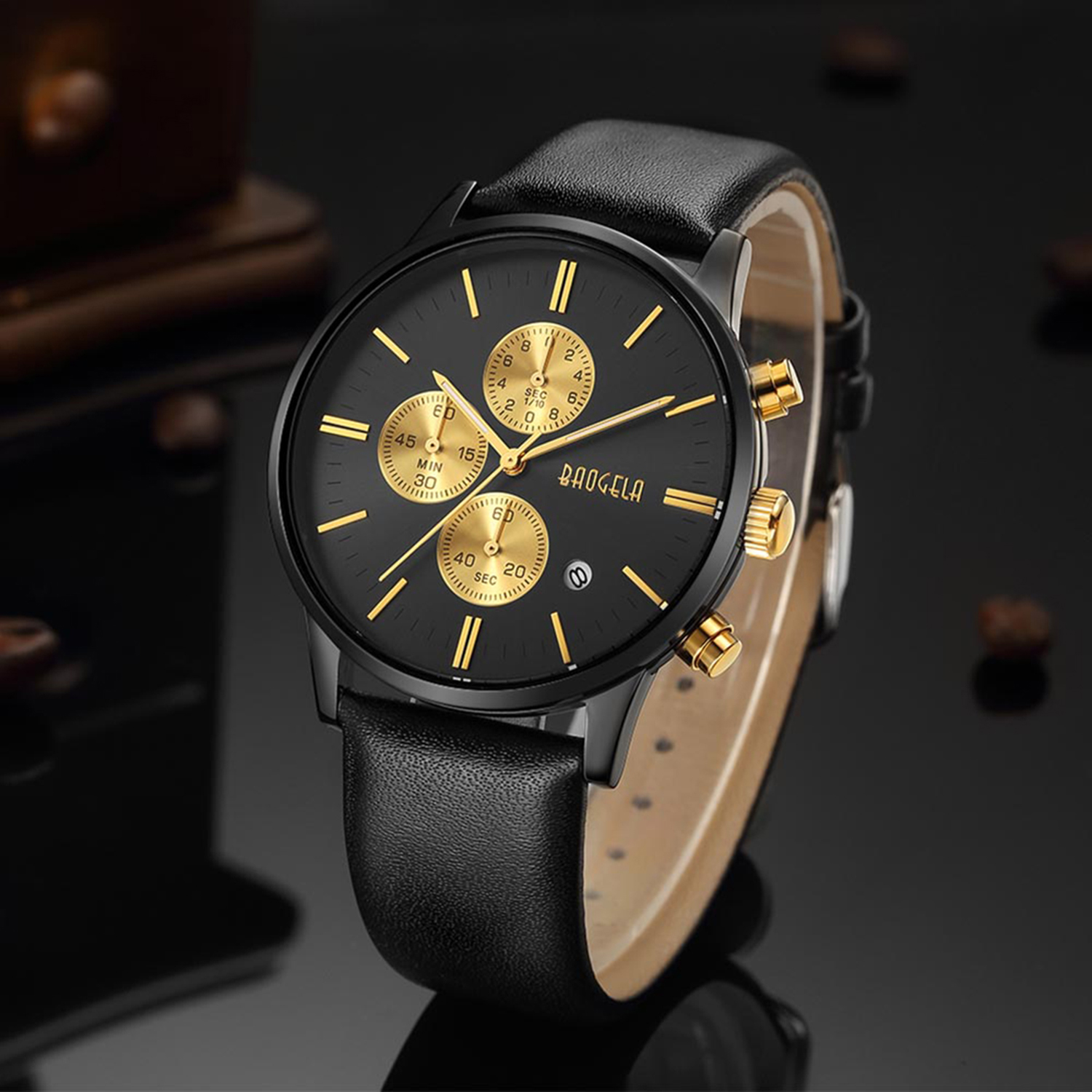 BAOGELA New Watch Men Fashion Chronograph Quartz Watch Leather Band Watches Gifts For Male Sports R