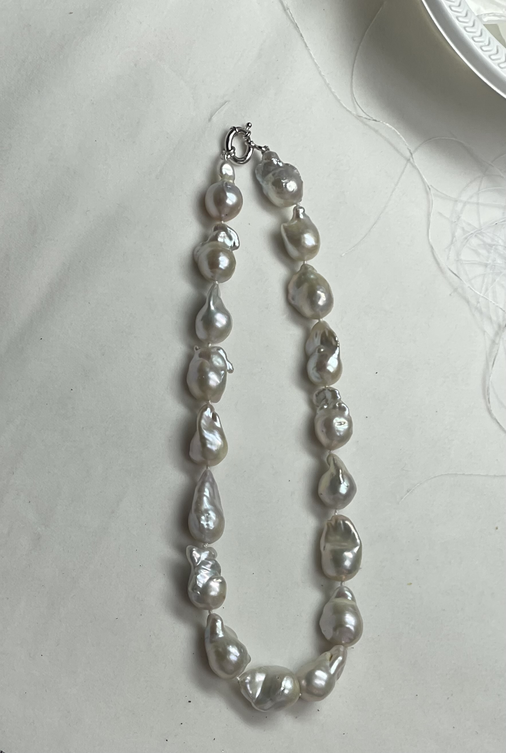 FRESH WATER PEARLS, BAROP\QUE 12-15MM,WITH SILVER CLAPS, 45CM.