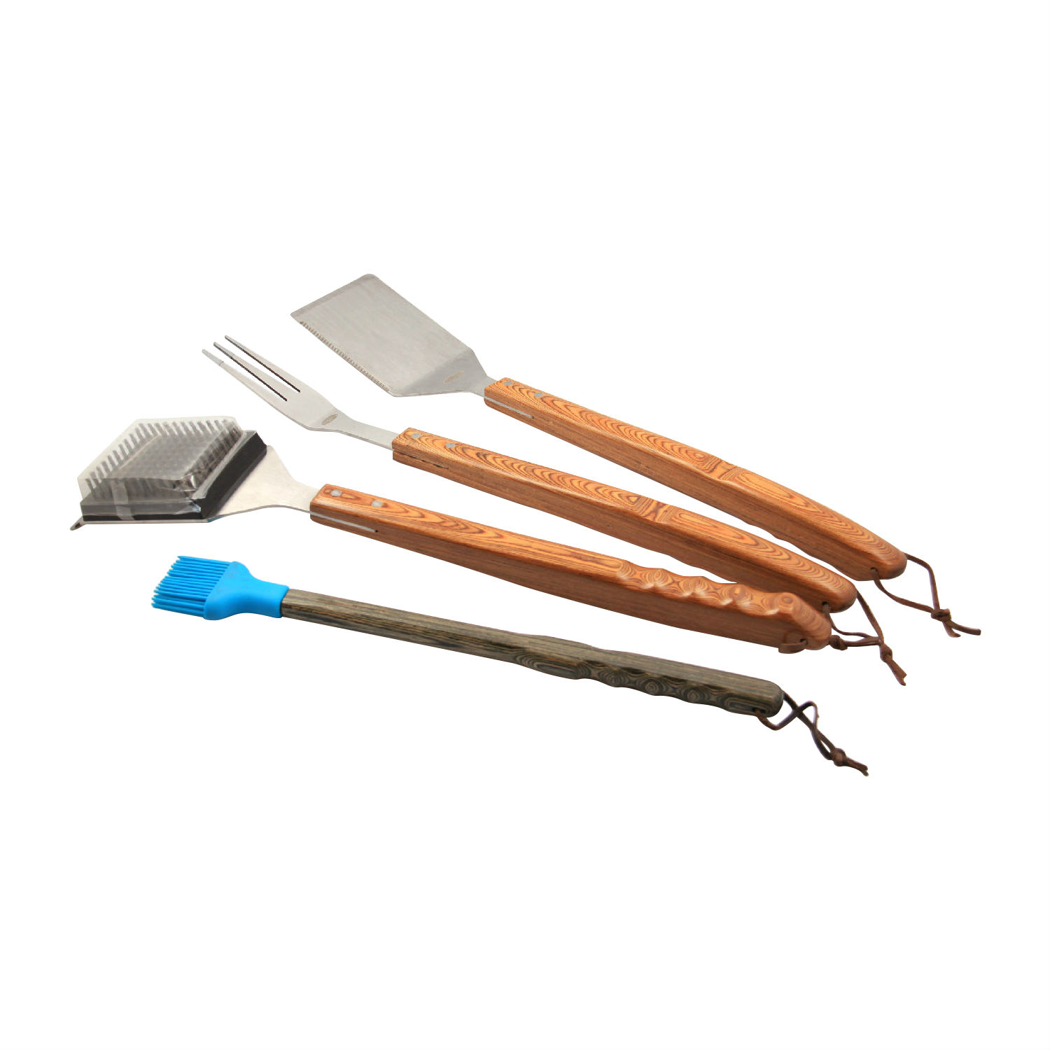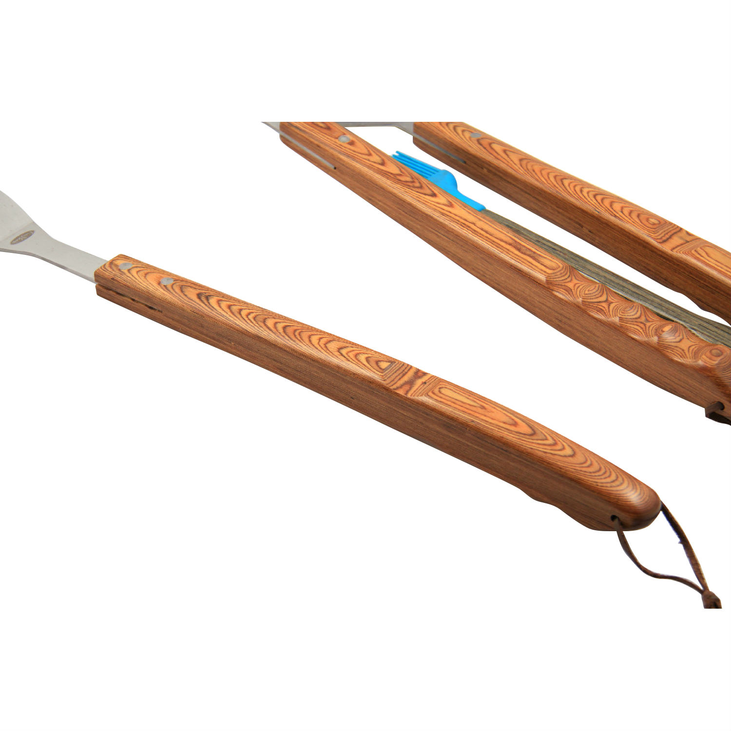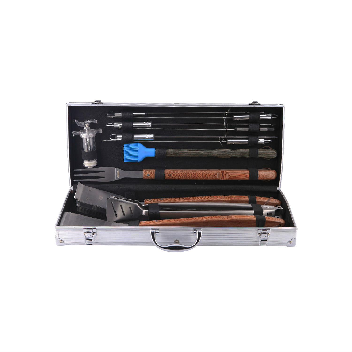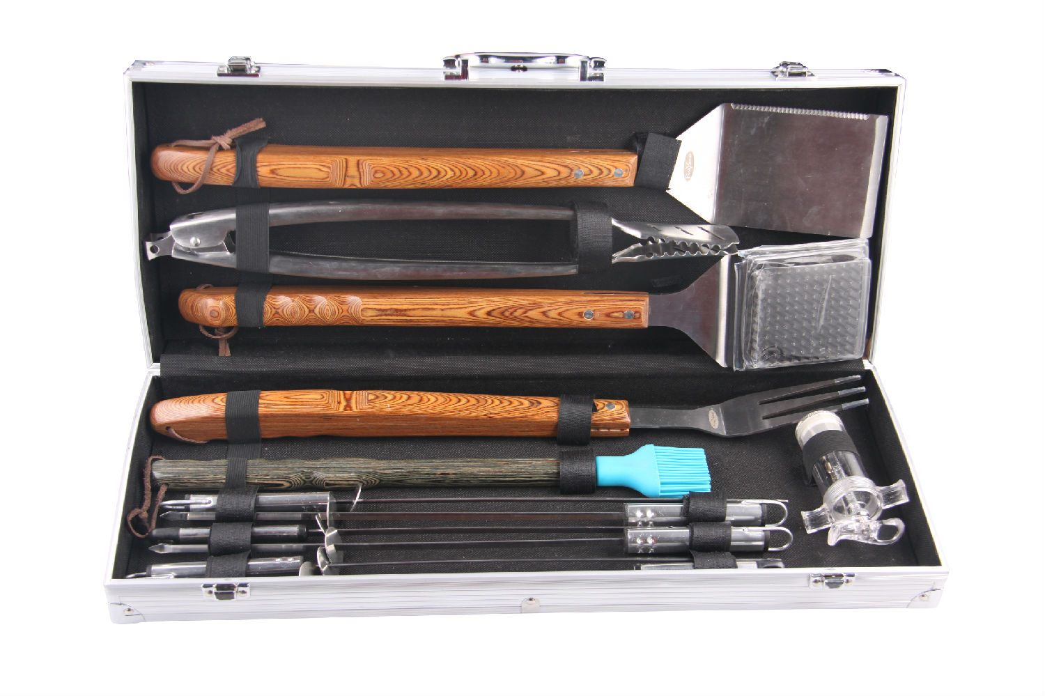 This BBQ tool set comes with 12pcs in different shapes and sizes stored in a sturdy case. The case comes with a handle on top for enhanced portability. The tools features a lanyard hole for easy hanging.