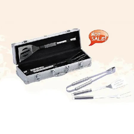 This is a BBQ tool set that includes a pair of 35cm tongs, a 35.5cm fork and a 35cm spatula. All the pieces are well packed in an aluminum case. Made of top-quality stainless steel, each tool is easy to clean and offers an extra-long service life.