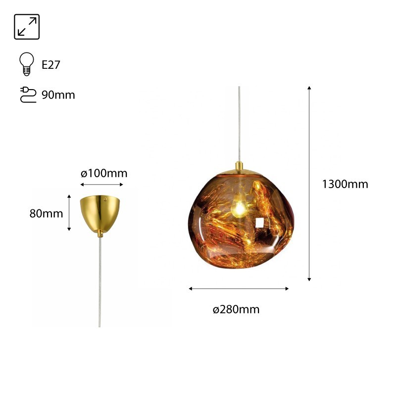 Abril es uno de nuestros productos mas destacables. Inspirada en el famoso disenador Tom Dixon, This lampara organica se desmarca creando un efecto fascinante de cristal derretido y soplado en caliente al encender la luz. Cuando la lampara this apagada, la superficie irregular de la pantalla aparece reflejada. Al encender la luz, La Superficie irregular de la Pantalla Aparece reflejada. Al Encender la Luz, el material utilizado para la pantalla se vuelve translucido. Entonces, la pantalla se convierte en un punto de atraccion fascinante. La lampara colgante de diseno inspirada en Tom Dixon va mas alla de los limites y desafia lo establecido. Es una lampara ideal para la decoracion de salones, hoteles, restaurantes, estudios, etc.. Para interiores con IP20.