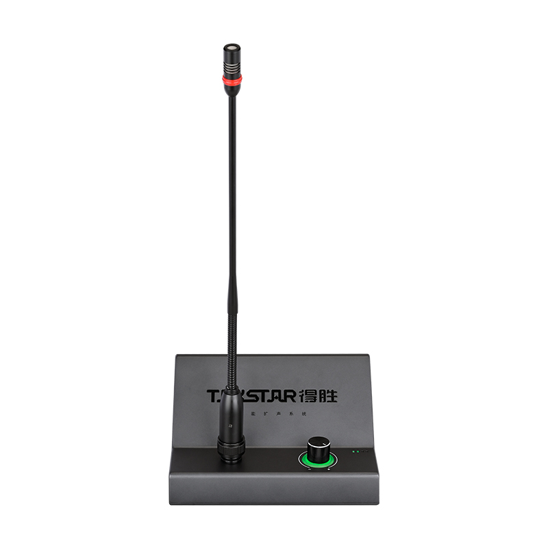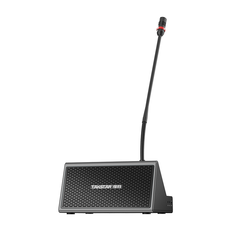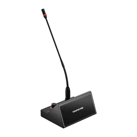 • Gooseneck microphone, speaker, and amplifier in one.