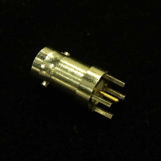 Displayed is a coaxial connector, made as a miniature RF connector to offer enhanced data transmission. The BNC (Bayonet Neill-Concelman) connector highlights a sturdy and reliable construction. It is widely used in computer networks, data processing, telecommunication and various security appliances.