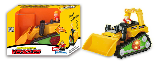 The pictured toy engineering vehicle is battery operated and is made of safe and non-toxic ABS plastic. It has the design of a dozer with tracks and is equipped with lights on the side. This engineering vehicle comes in bright colors to attract the attention of children and can keep your little one engaged and entertained for a long time.